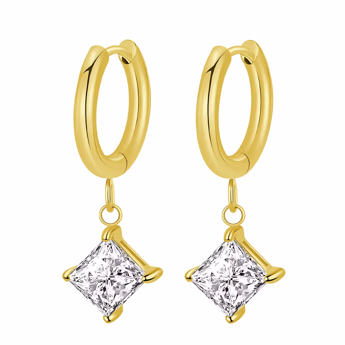 Creol / Örhänge i 316L kirurgiskt stål med 18 karat guldplätering. Creol med stor CZ i hänge. Storlek på hela hänget ungefär 2.9 x 1 cm.
