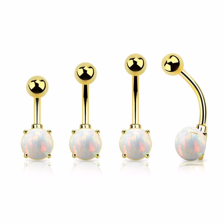 Navelsmycke / banana guldpläterad med 7mm prong set opal