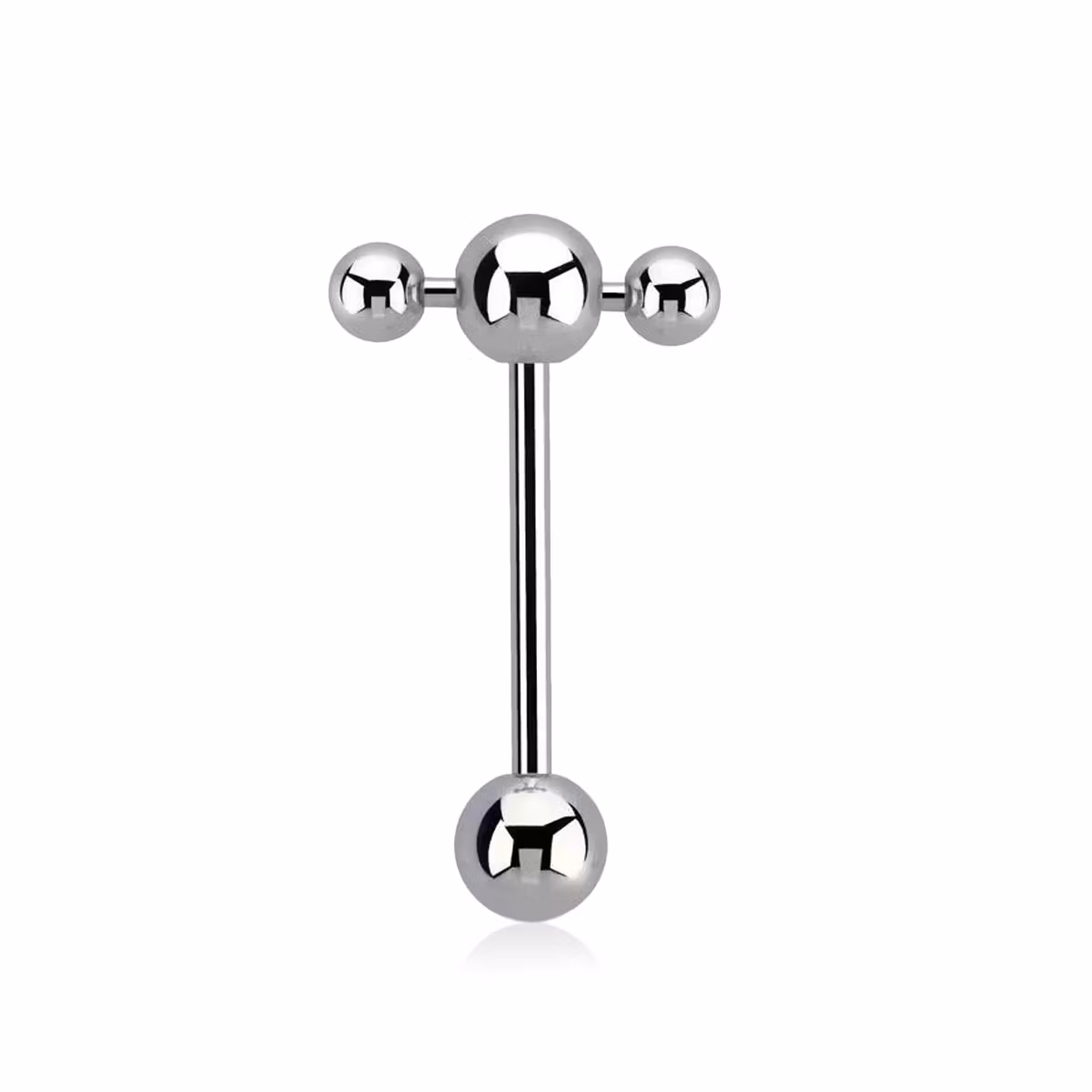 Tungstav / barbell 1.6mm (16mm lång) med 6mm kulor. I ena kulan sitter en mindre barbell, en så kallad spinner, som är 1.2mm tjock med två 4mm kulor.
