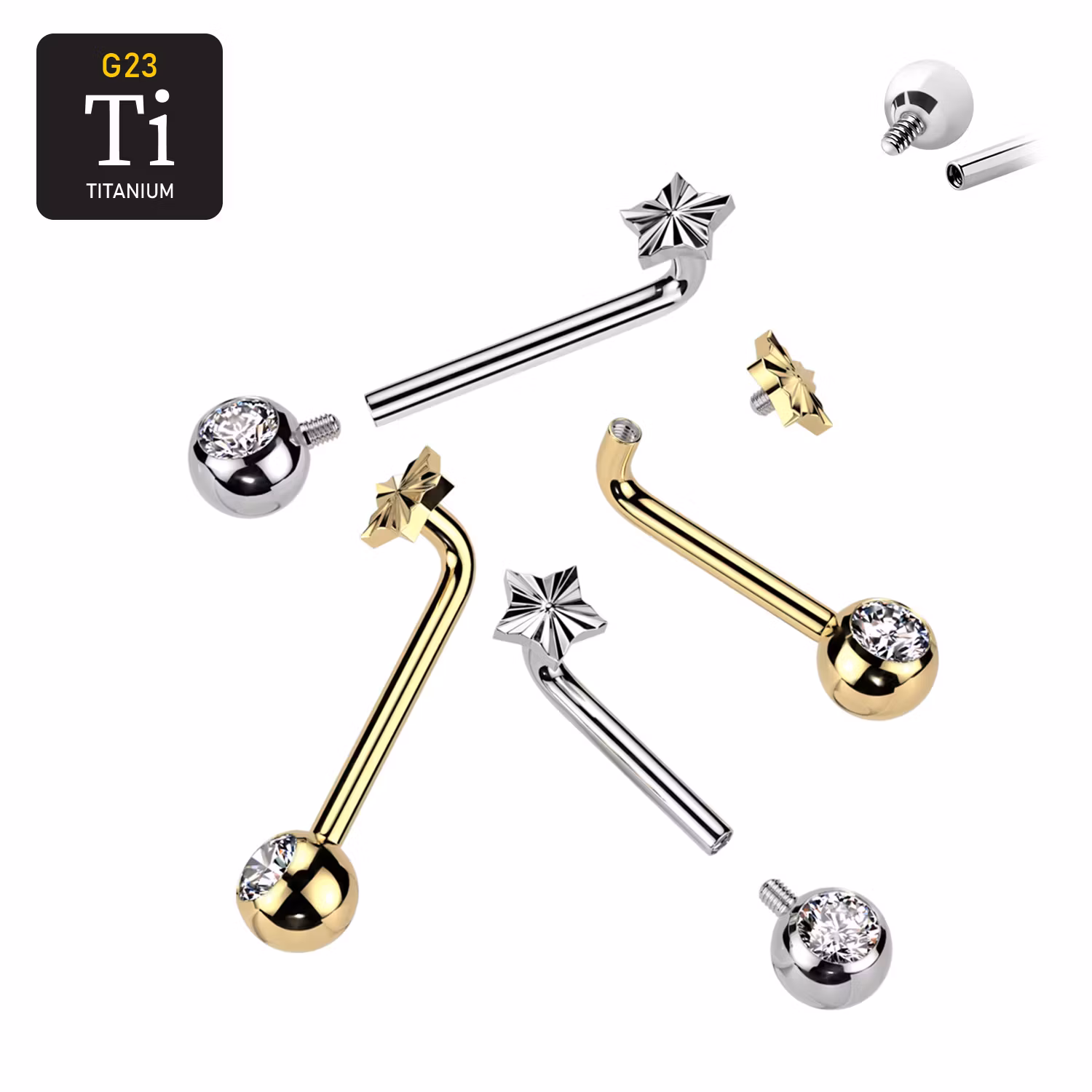 Barbell i titanium för Christina piercing - Invändigt gängad L-böjd med stjärna och kula