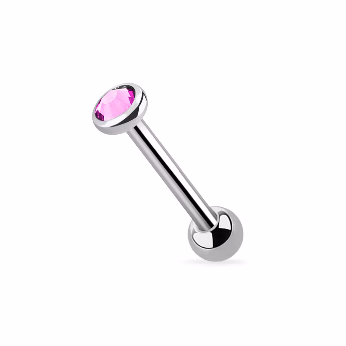 Barbell i ASTM-F136 G23 Titan. 14gauge - 1.6mm. 5mm platt topp med crystal i flera olika färger och 5mm kula. Invändigt gängad stav.