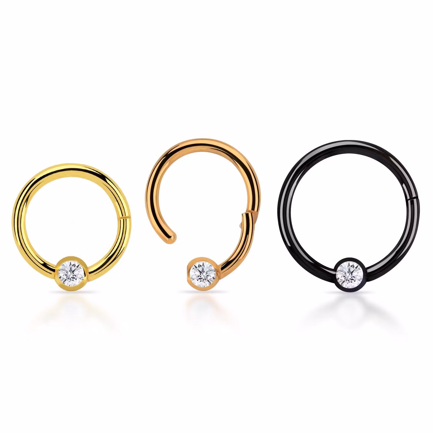 PVD-Pläterad segmentring 1.2mm med gångjärn och 3mm crystalkula