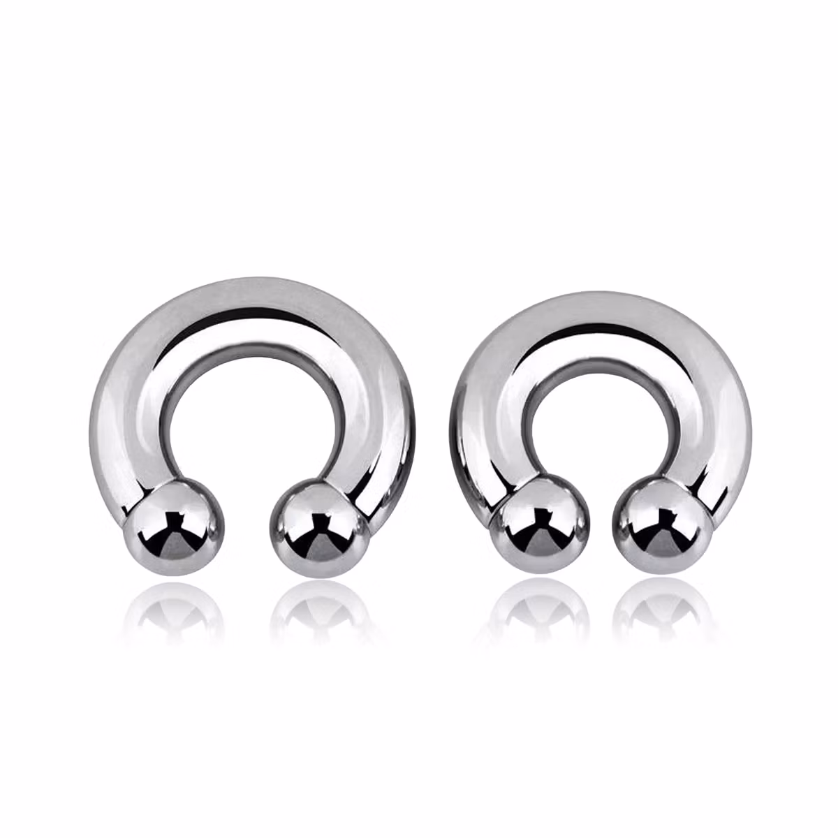 00gauge - 10mm tjock. 12mm kulor. Invändigt gängad ring, med en liten gängtapp på kulorna, så inga vassa kanter som skaver.