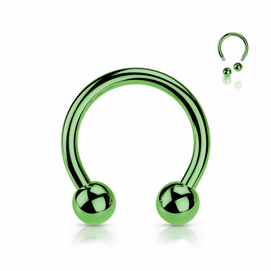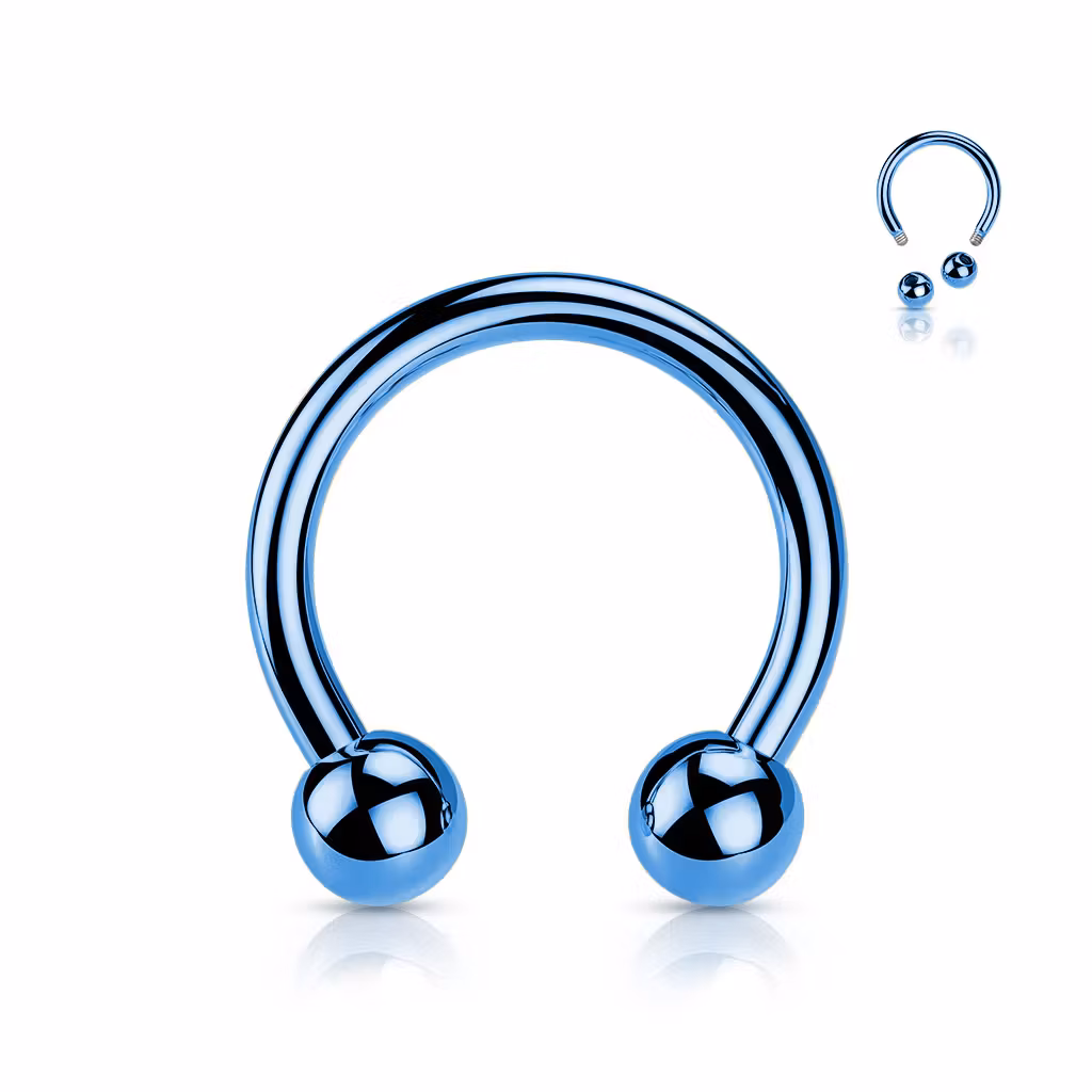 Cirkulär barbell i PVD-pläterad ASTM-F136 G23 Titanium. 16gauge - 1.2mm. 3mm kulor. Utvändigt gängad stav. Ringens diameter anges som innerdiameter.