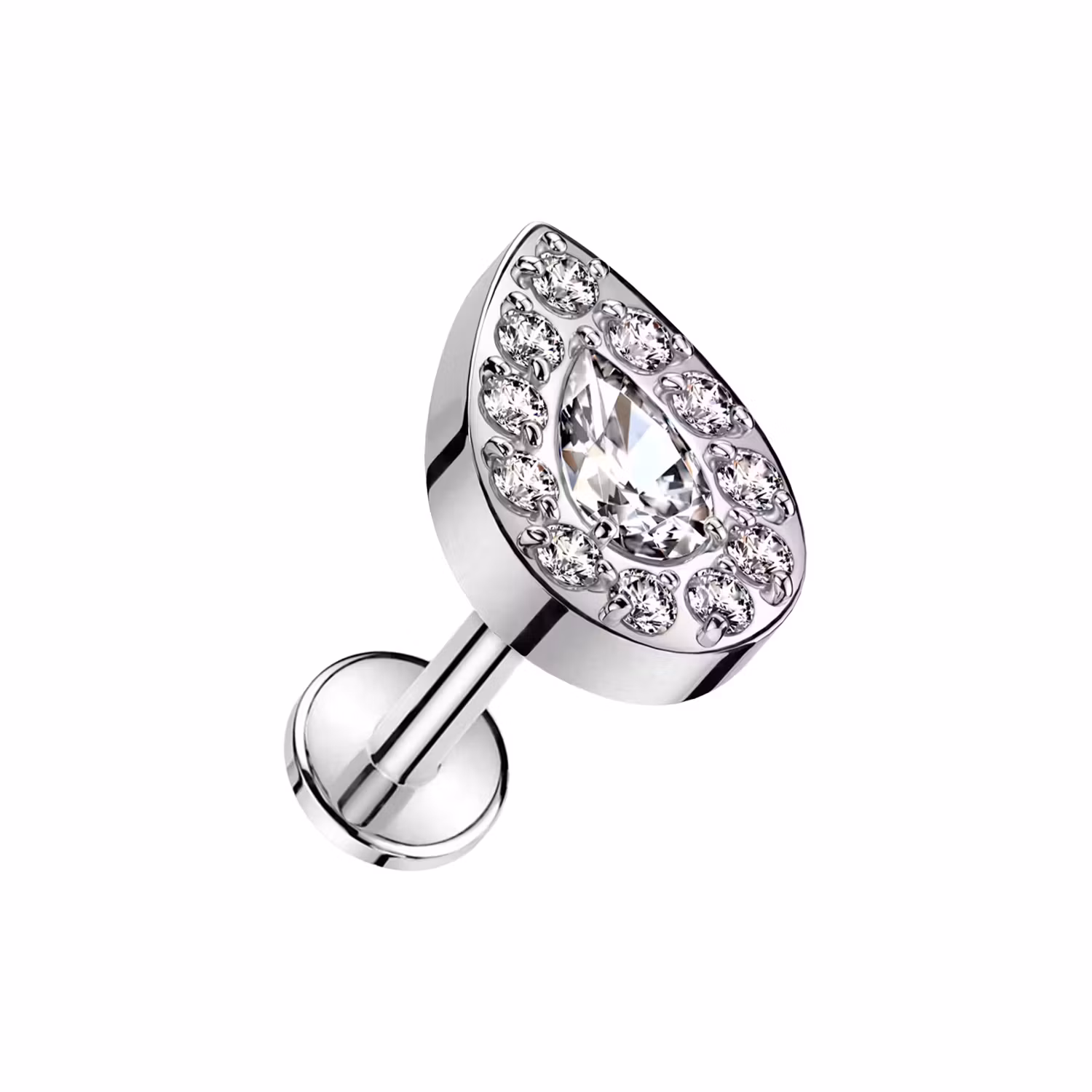 Threadless labret i titanium 1.2mm - Droppformad topp med cubic zirconia