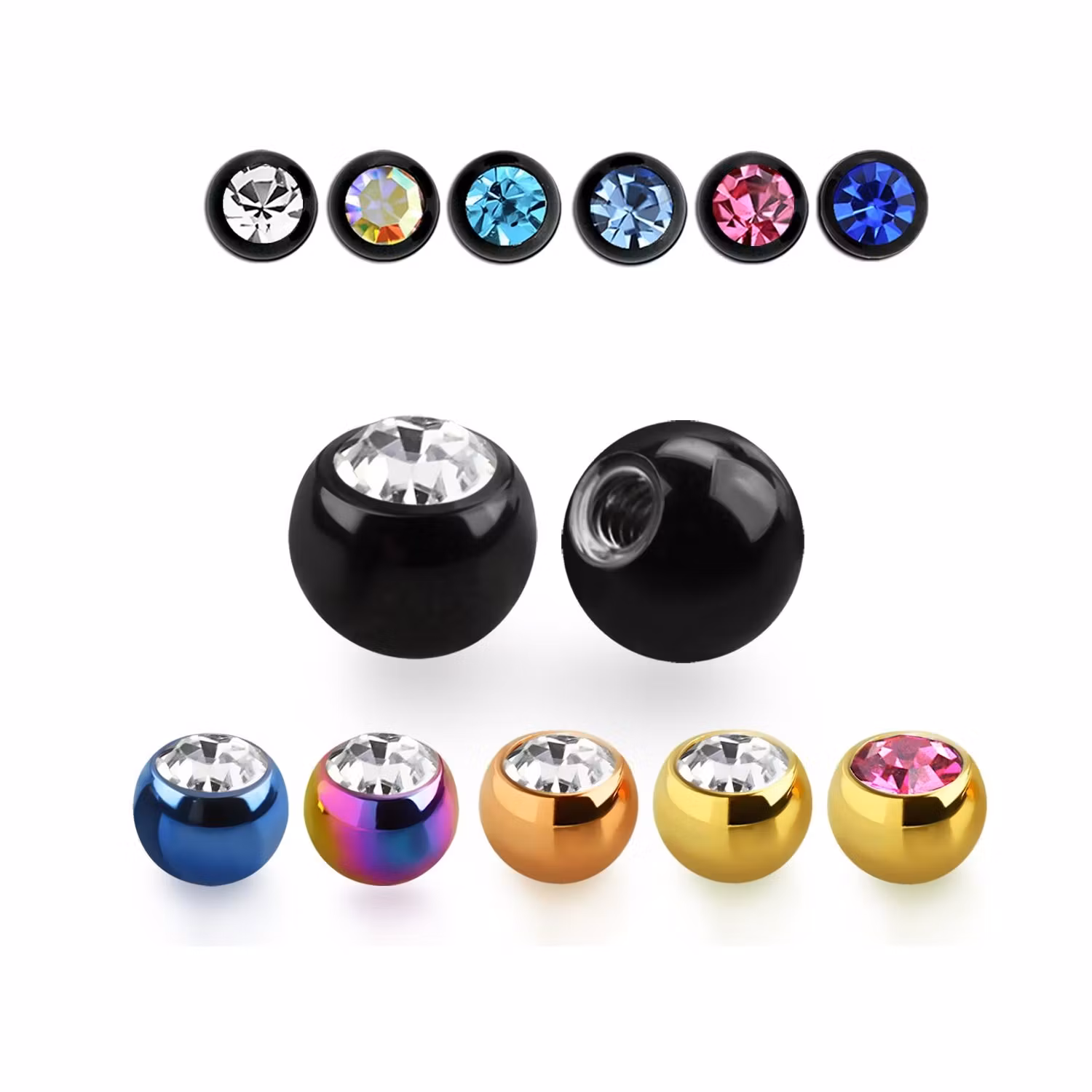 PVD-Pläterad Lös kula 5mm diameter 1.2mm gänga med crystal (lös del)