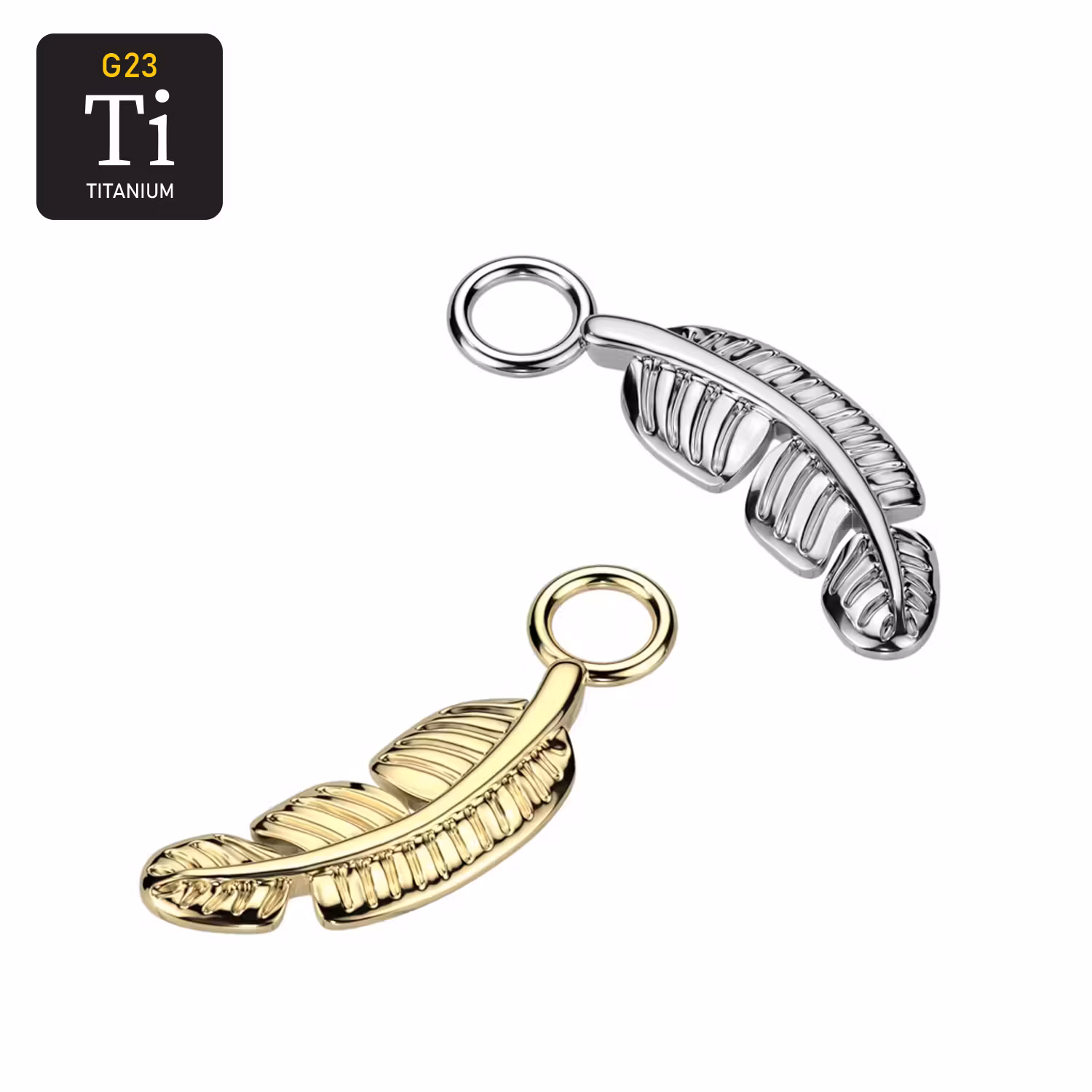 Hänge i ASTM-F136 G23 Titan. Den färgade varianten är PVD-pläterad.