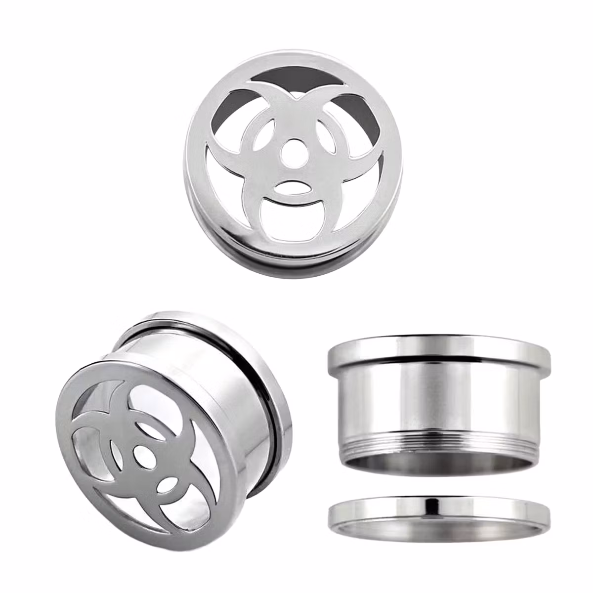Screw-Fit modell med ring på baksidan som håller den på plats. Laserskuren "Bio Hazard" -logo.