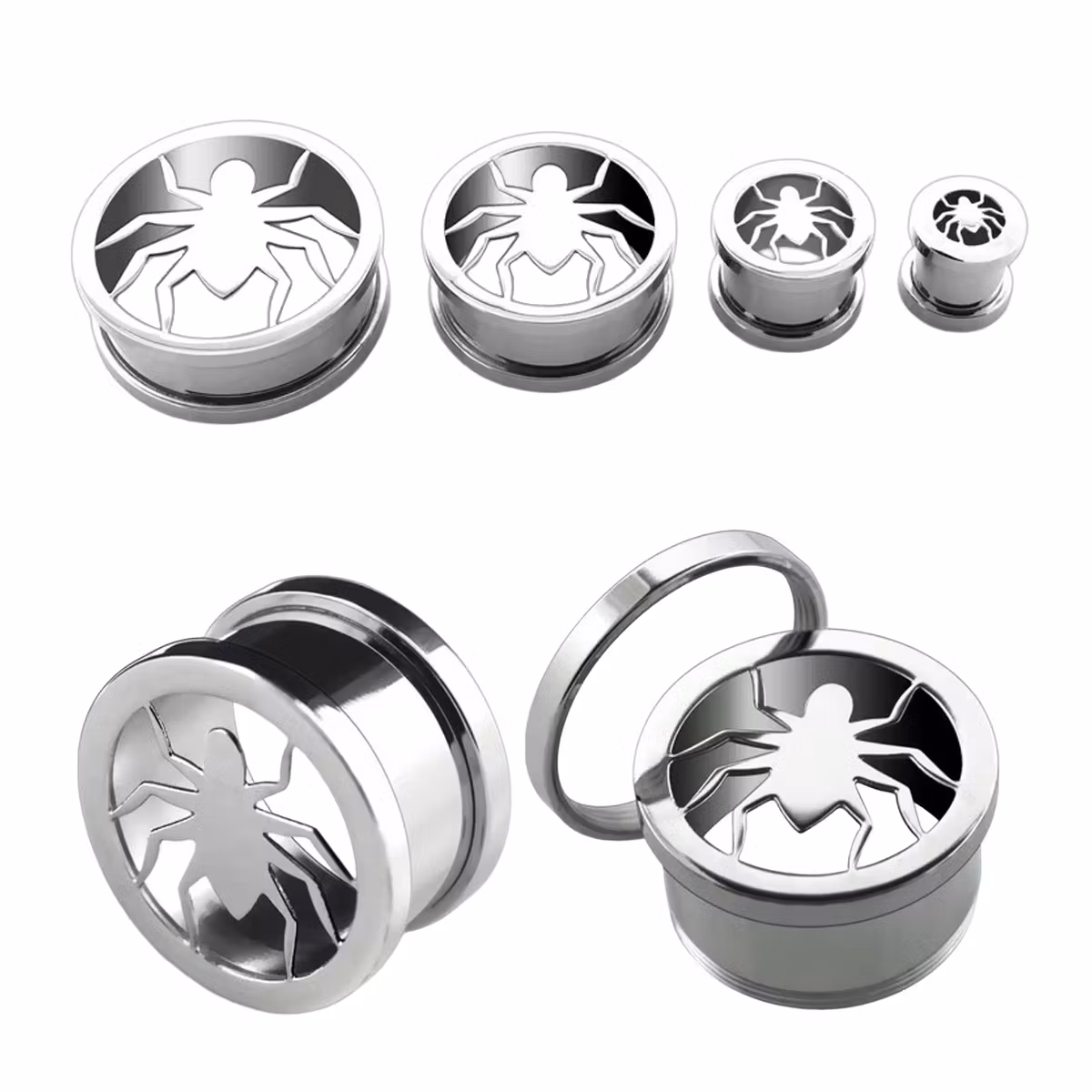 Högglanspolerad flesh tunnel med screw-fit ring som håller den på plats.