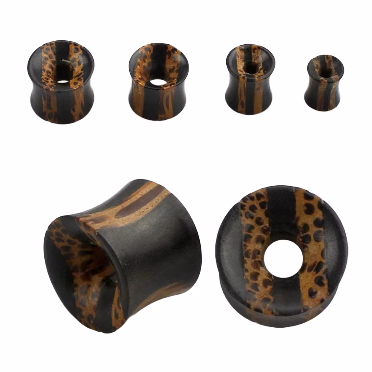 Double Flare Flesh tunnel i Coconut och areng-wood. Tillverkas av organiskt råmaterial så varje tunnel är unik.
