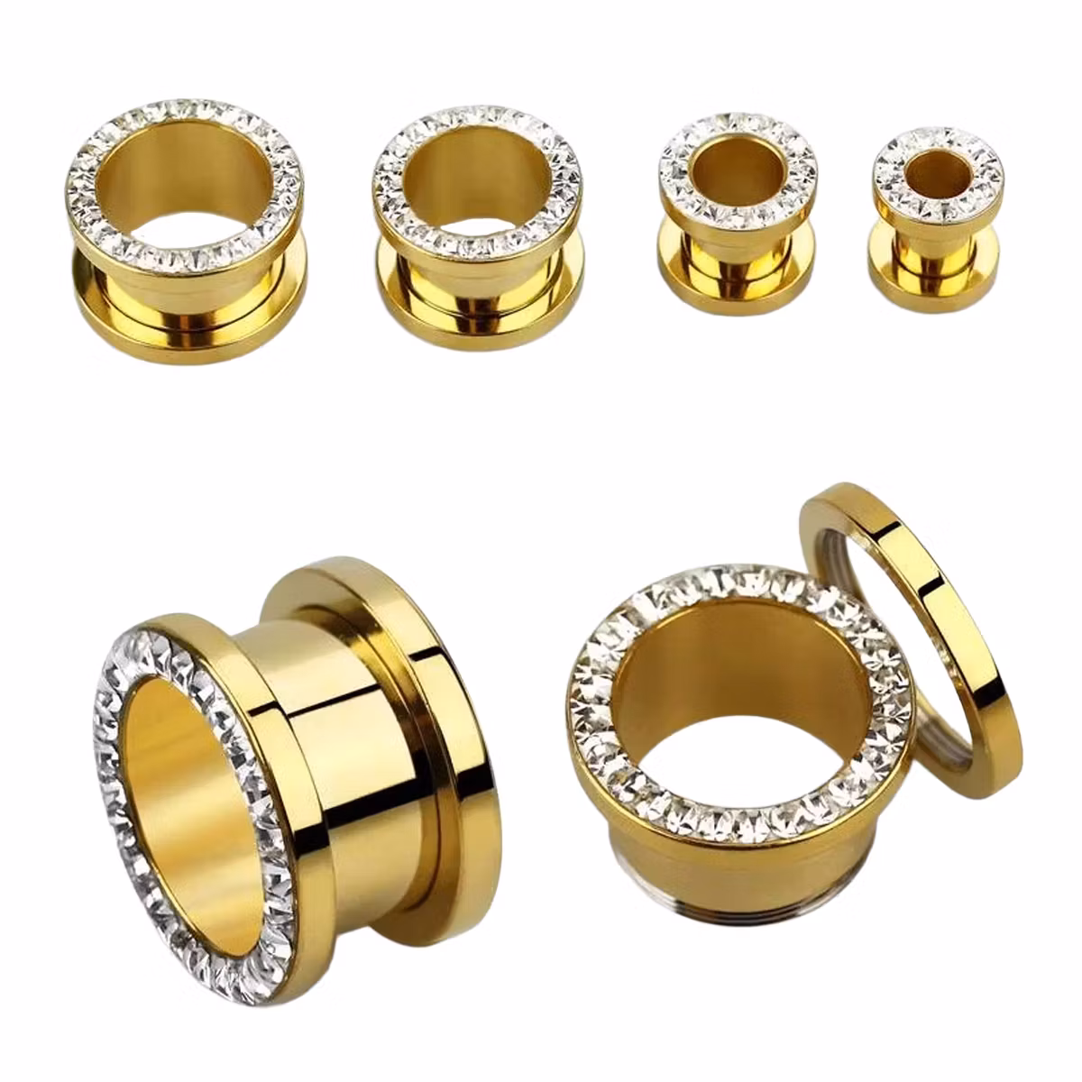 Fleshtunnel i guldfärgad, PVD-pläterad, 316L Kirurgiskt stål.