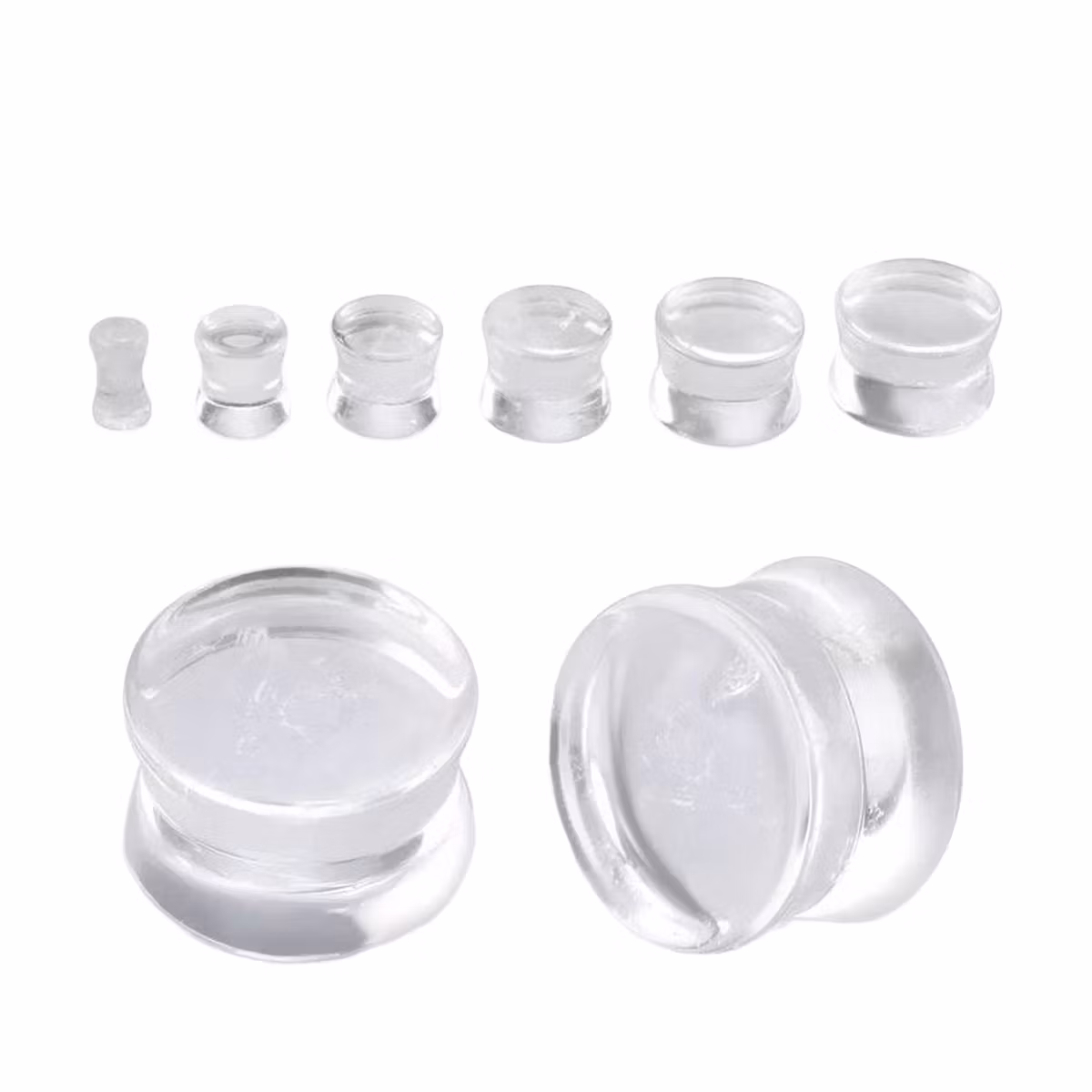 Stenplugg i crystal quartz (Klar kvarts). Varje plugg är unik och har ett litet krackelerat mönster inuti - detta mönster varierar från plugg till plugg.
