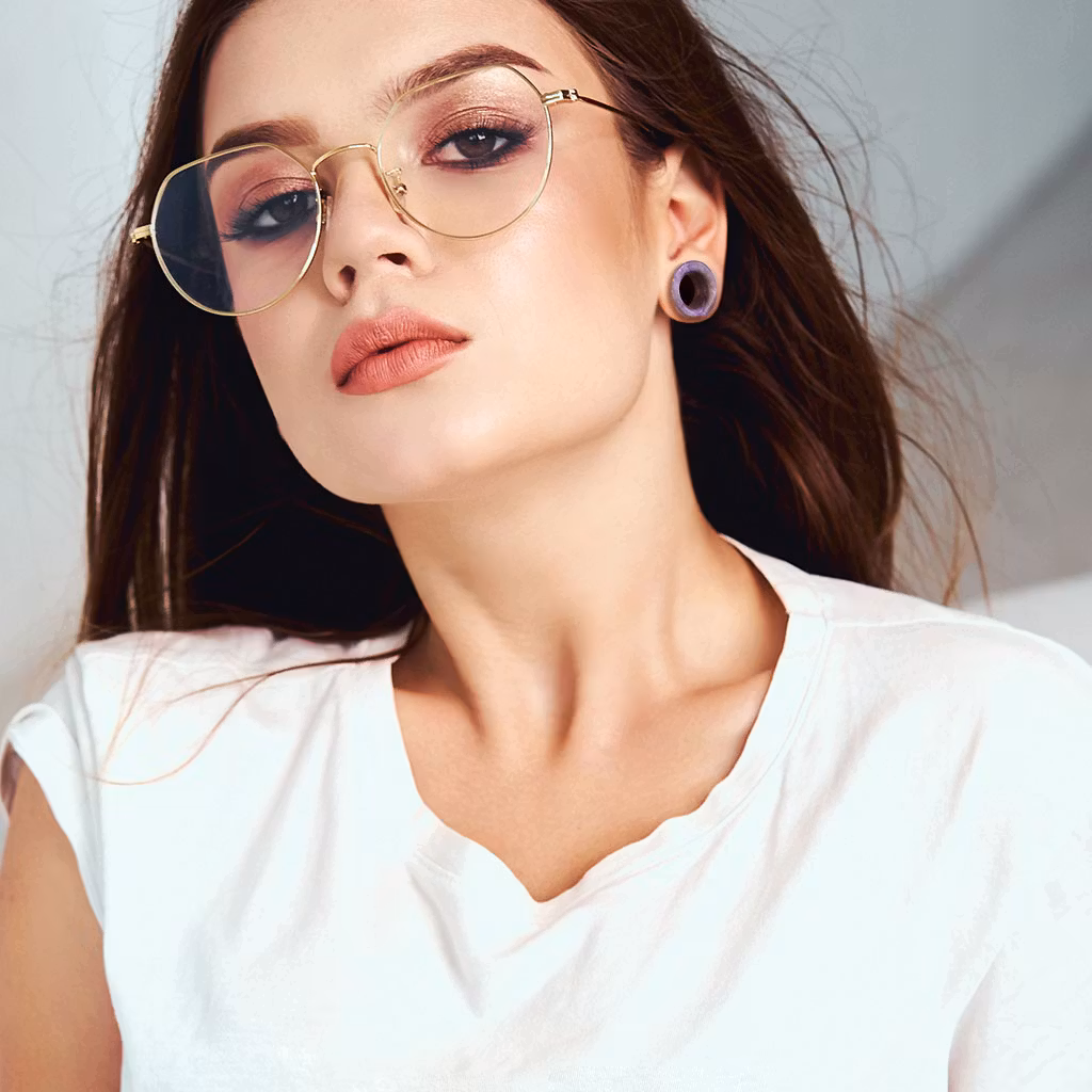 Double flare tunnel i ametist. Något upphöjd kant håller den på plats.