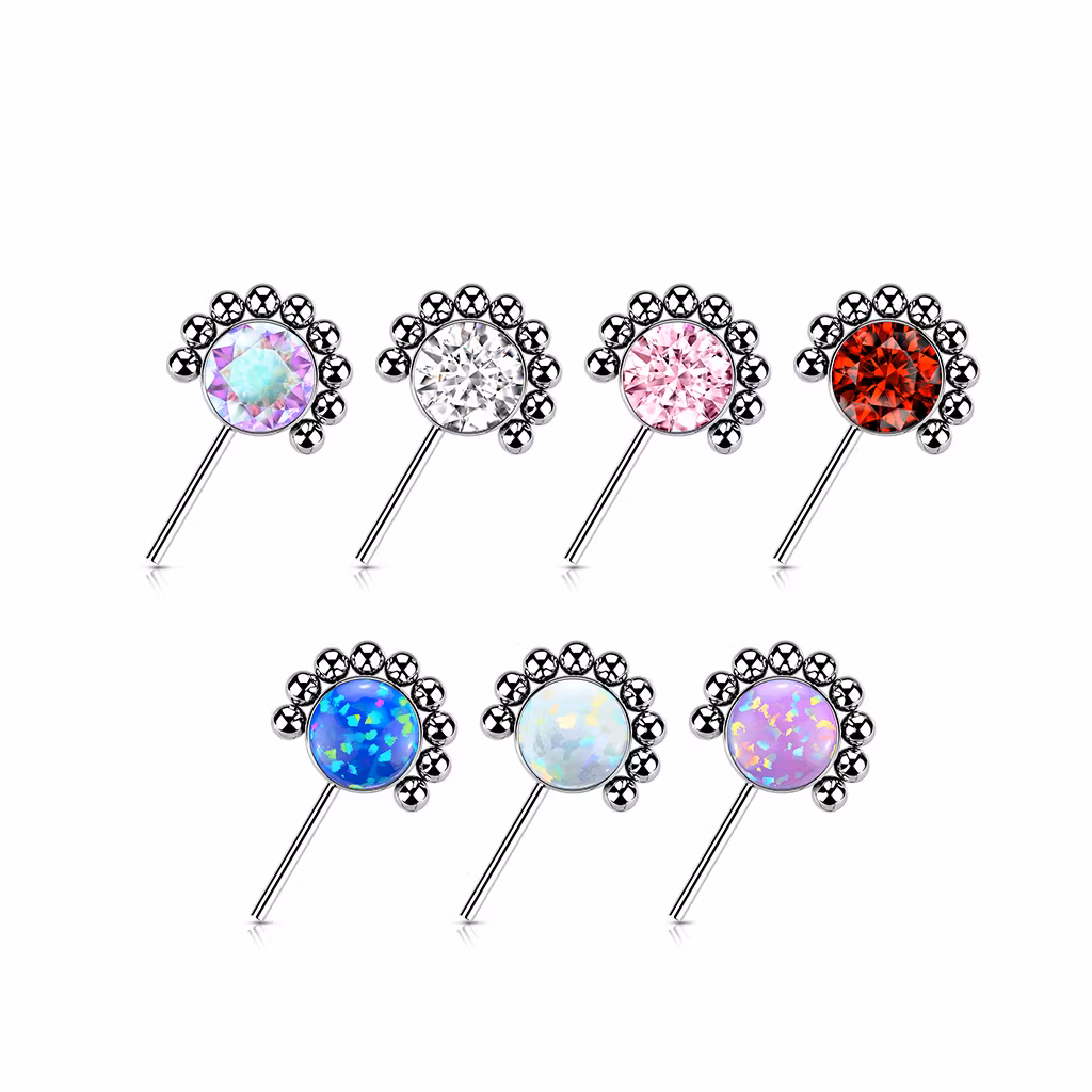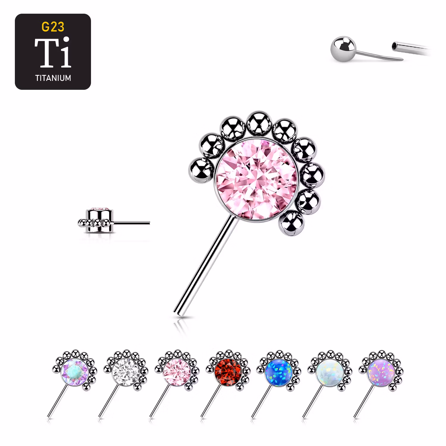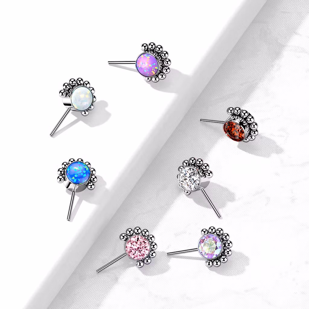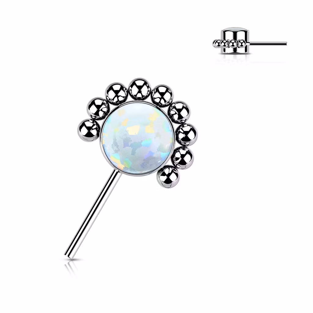 Topp för Threadless push-in smycken helt i ASTM-F136 G23 Titan. Syntetisk opal eller cubic zirconia.