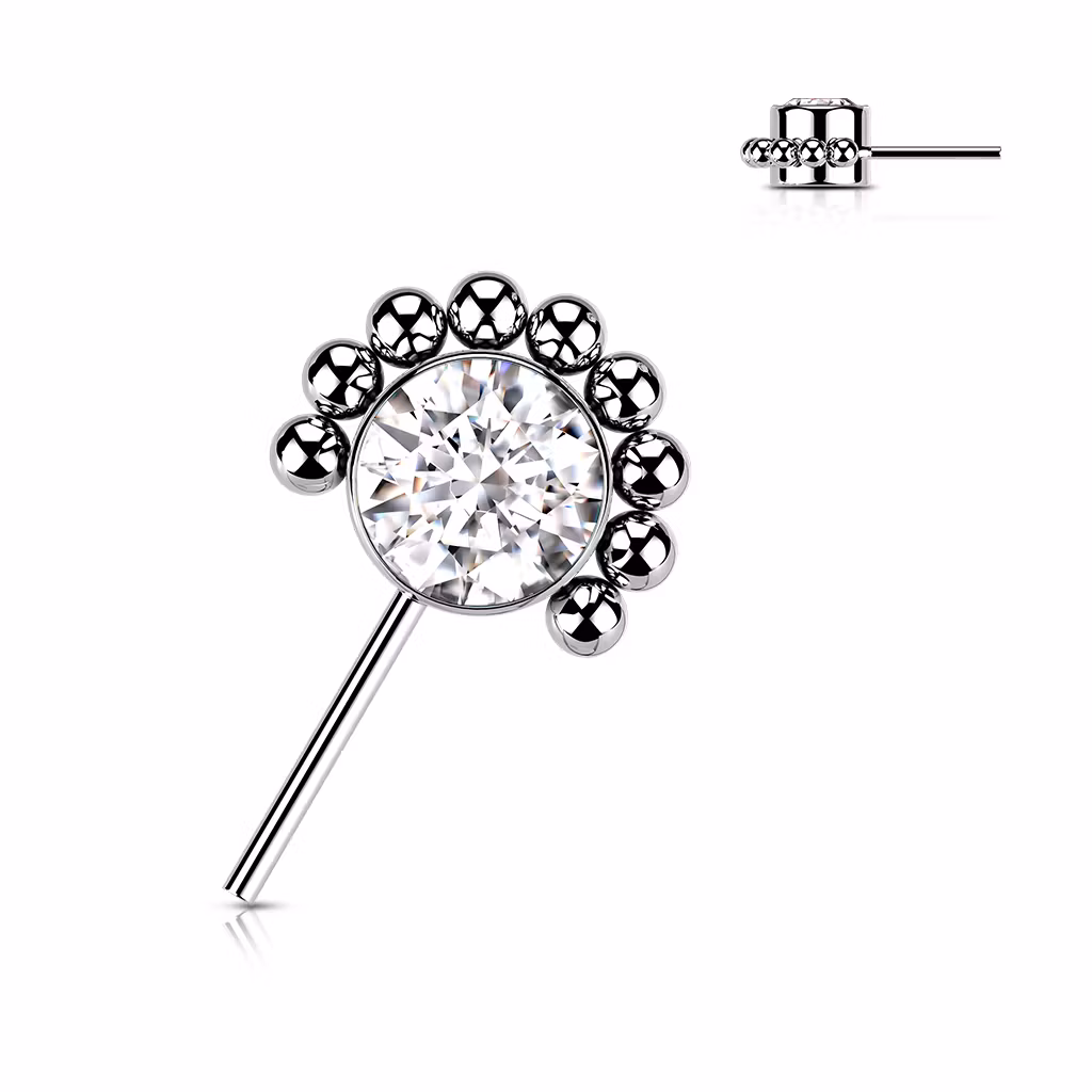 Threadless topp i titanium - Frontad CZ eller opalit med kulor