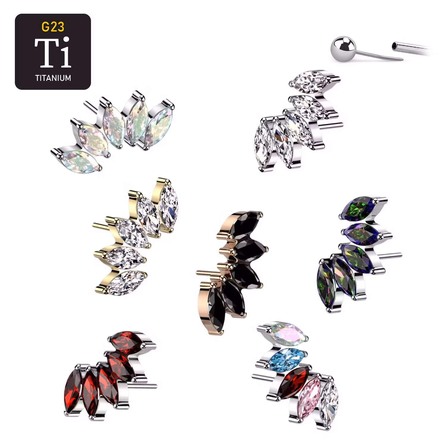 Topp för Threadless push-in smycken helt i ASTM-F136 G23 Titan. De färgade varianterna är PVD-pläterade.