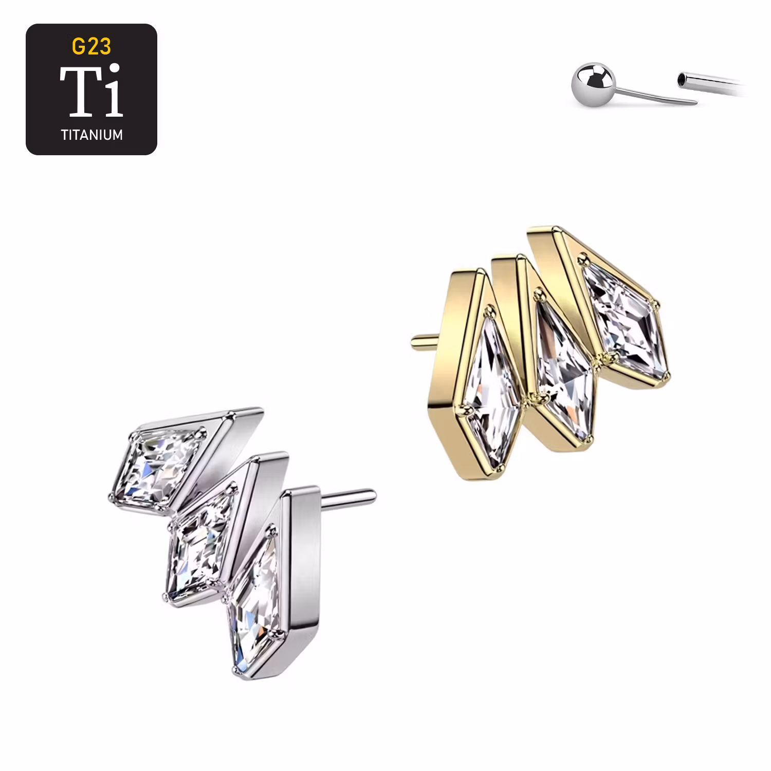 Threadless topp i titanium - Topp med 3st spjutspetsformade CZ