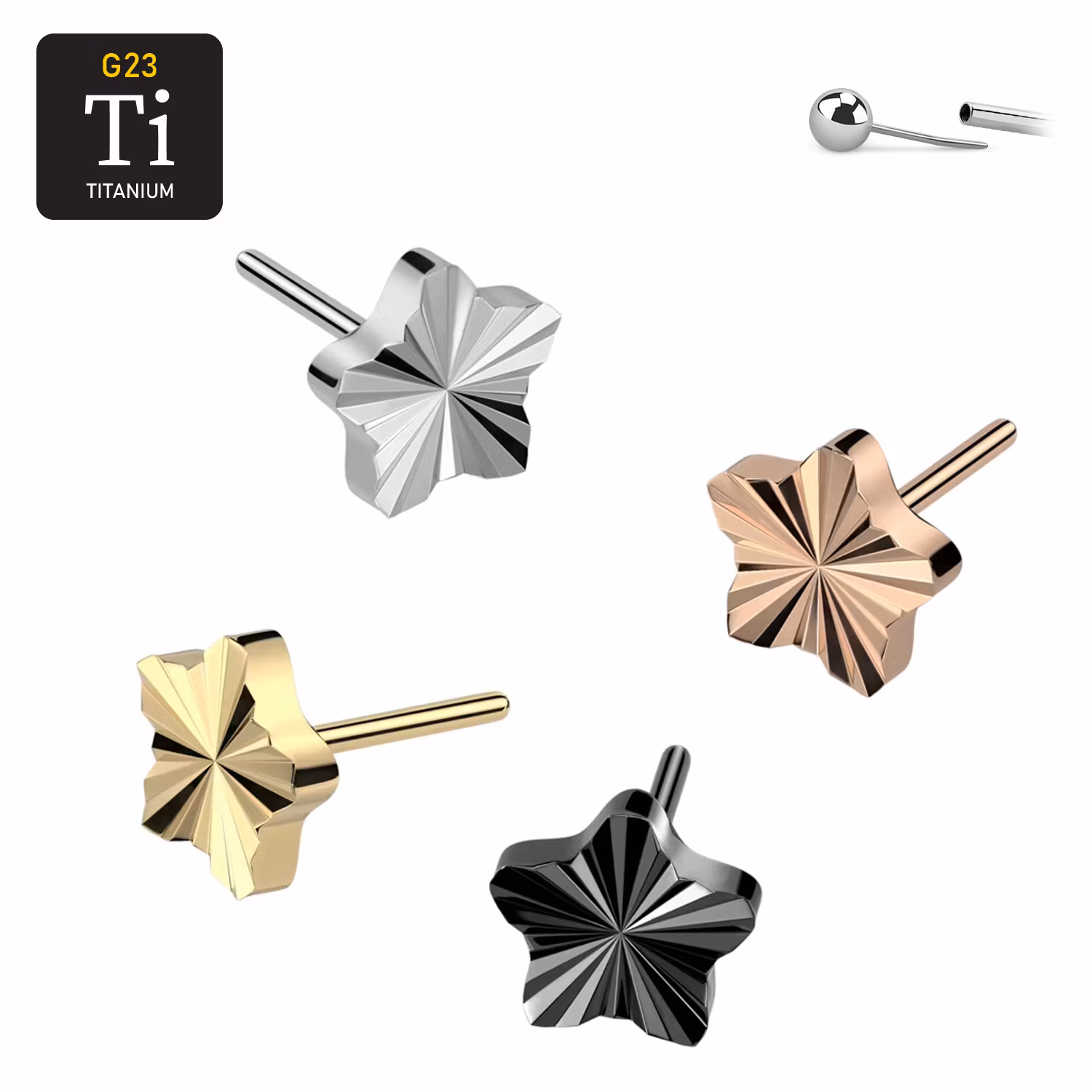 Topp för Threadless push-in smycken helt i ASTM-F136 G23 Titan. De färgade varianterna är PVD-pläterade.