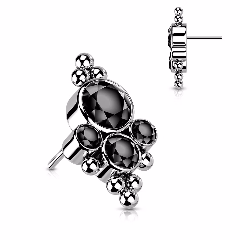 Threadless topp i titanium - Topp med 4st CZ och bollkluster