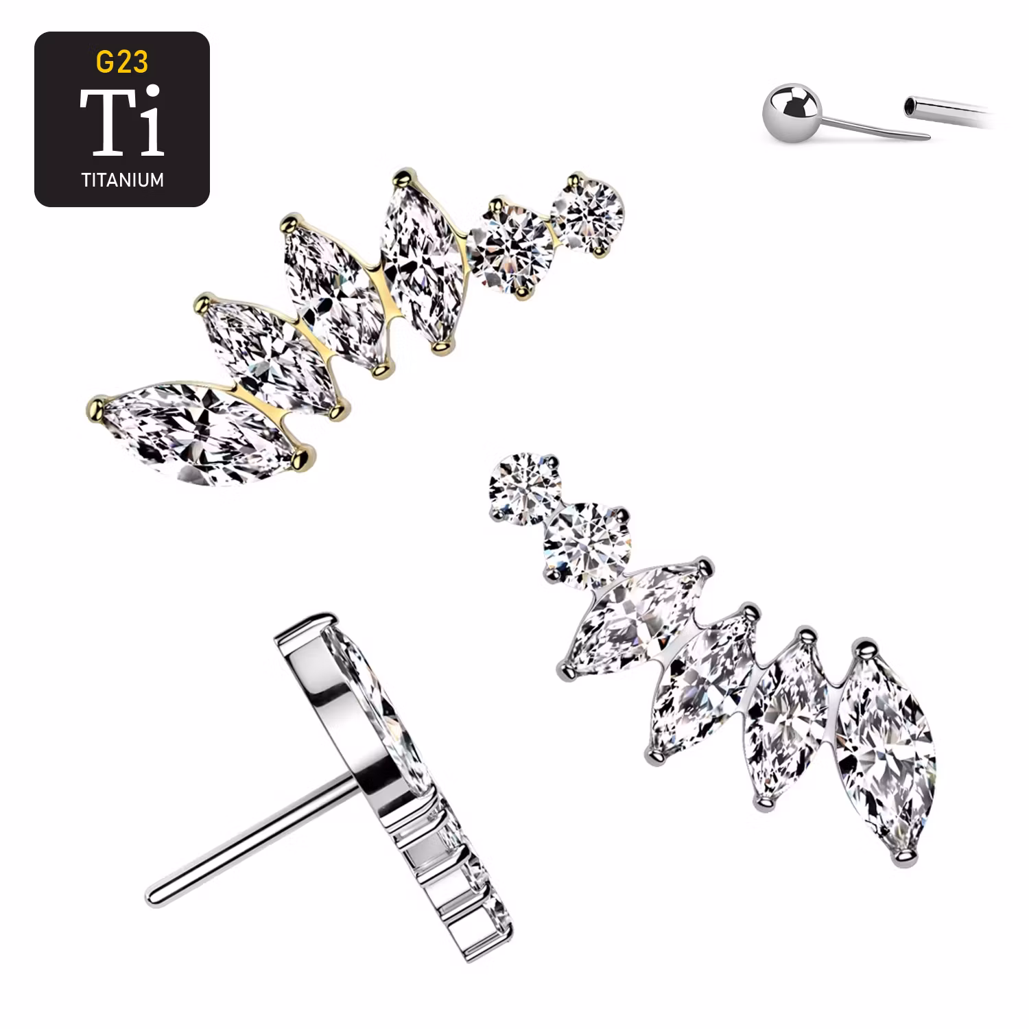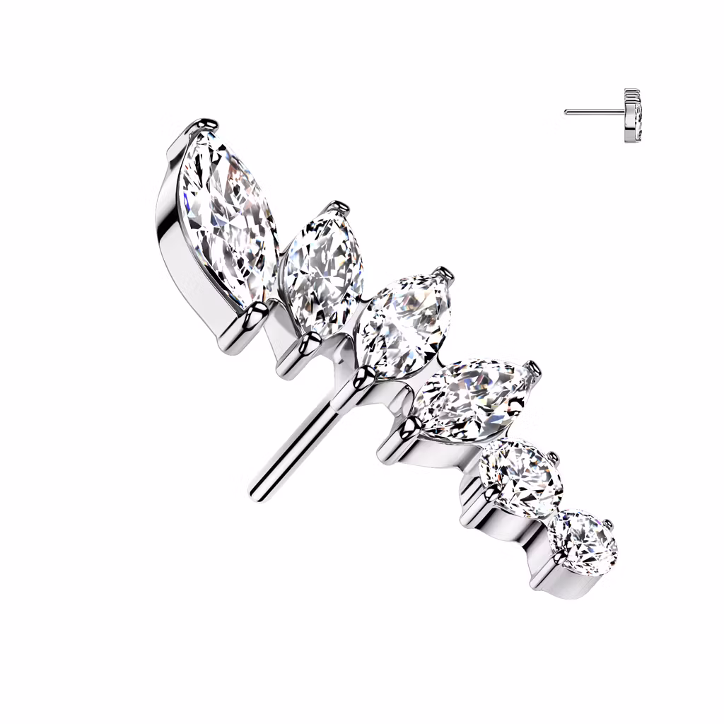 Threadless topp i titanium - 4st navettslipade CZ och 2st runda CZ