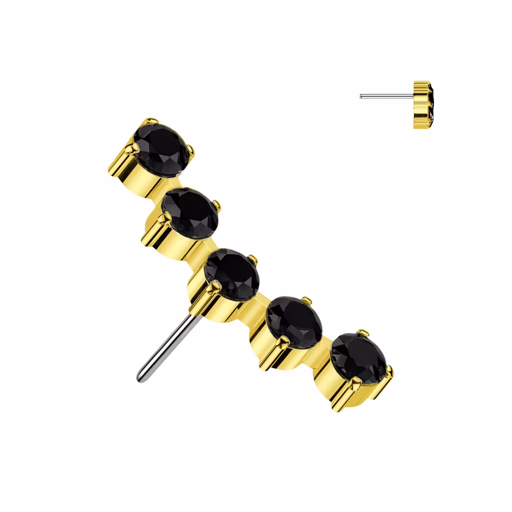 Threadless topp i titanium - Böjd topp med 5st CZ