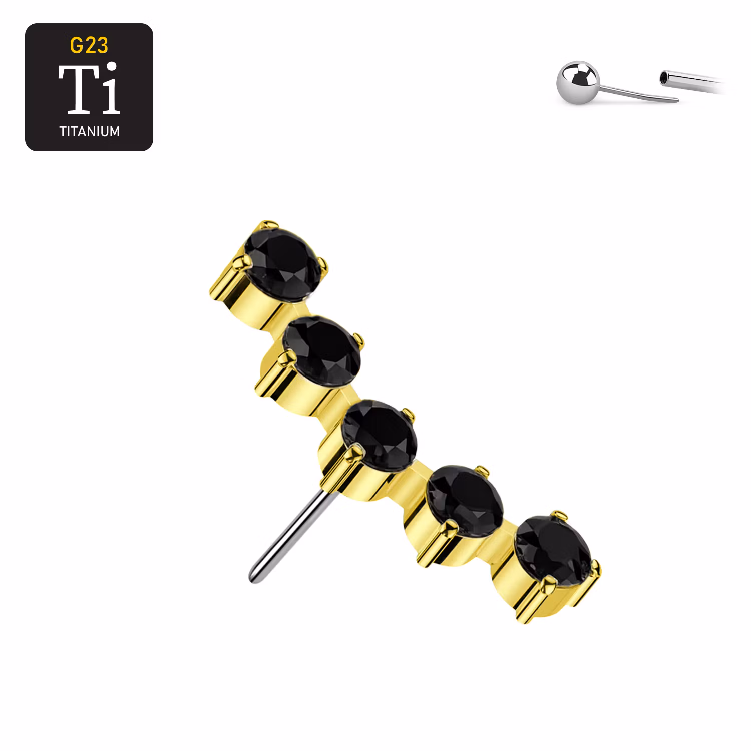 Topp för Threadless push-in smycken helt i ASTM-F136 G23 Titan. Den färgade varianten är PVD-pläterad.