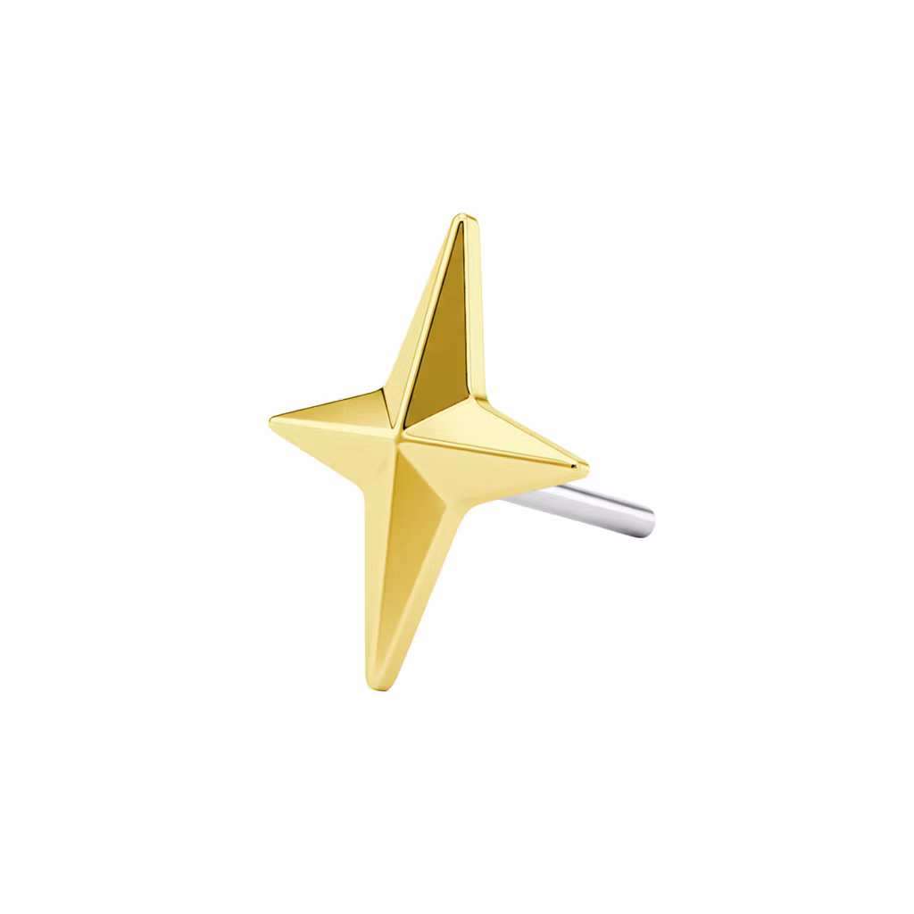 Threadless topp i Titanium. Den färgade varianten är PVD-pläterad. Format som en stjärna.