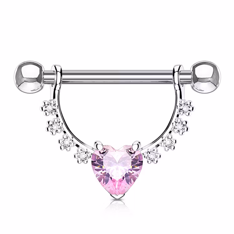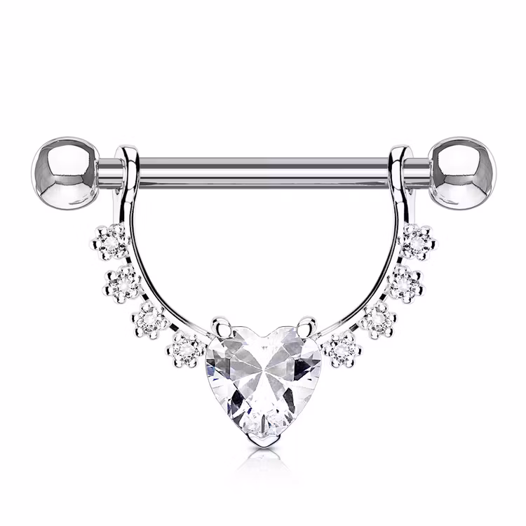 Barbell / Bröstsmycke - hänge med hjärtformad CZ