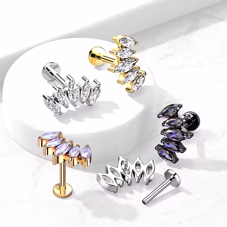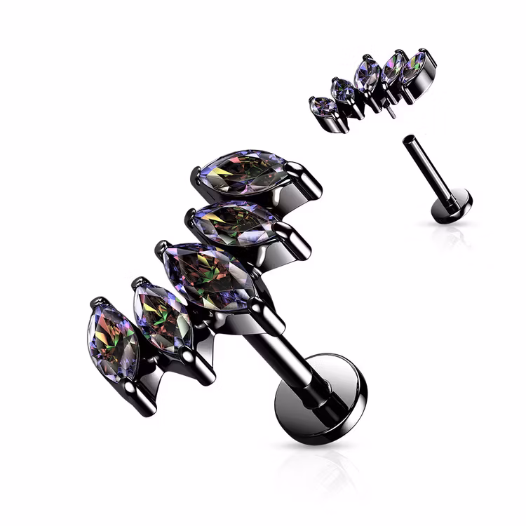 Tragus / labret med 5st marquise-cut CZ (alla delar kirurgiskt stål)