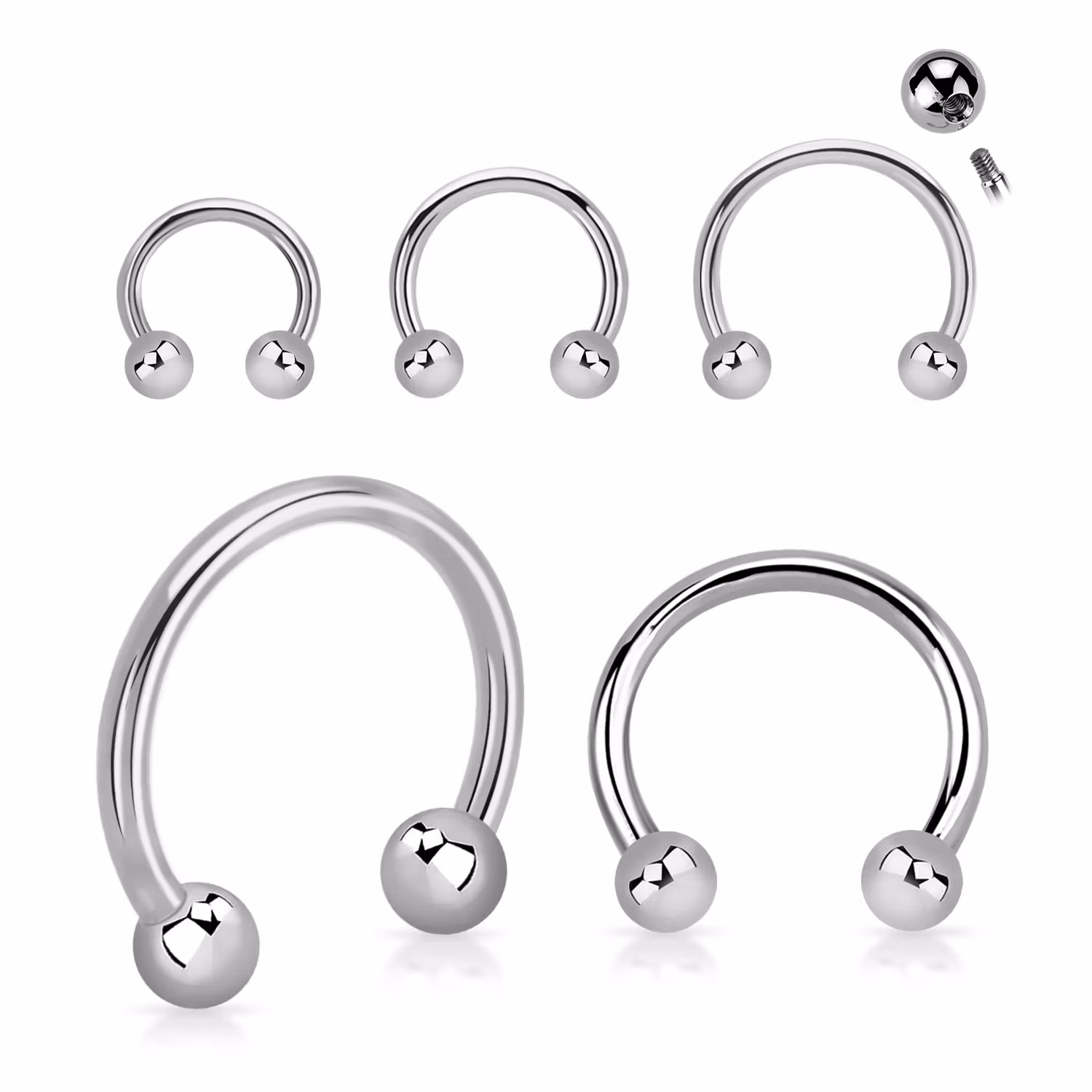 Cirkulär barbell i 316L Kirurgiskt stål. Utvändigt gängad cirkulär barbell, även kallad hästsko.