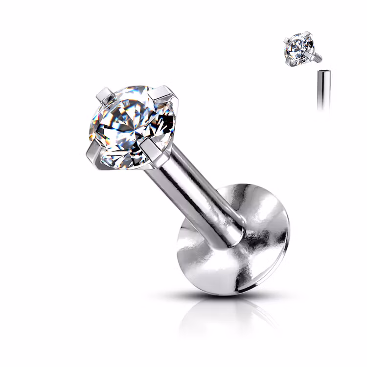 Labret / Monroe 1.2mm med klar "prong-set" cubic zirconia