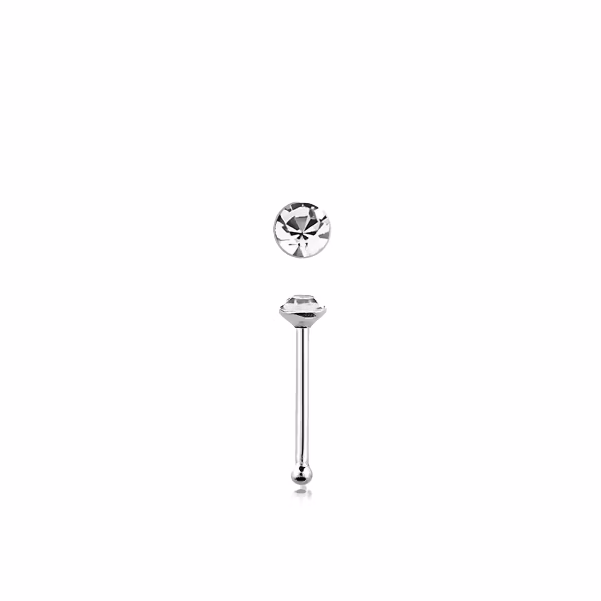 Näspin i 925-silver 0.6mm "nose bone" 1.25mm crystal
