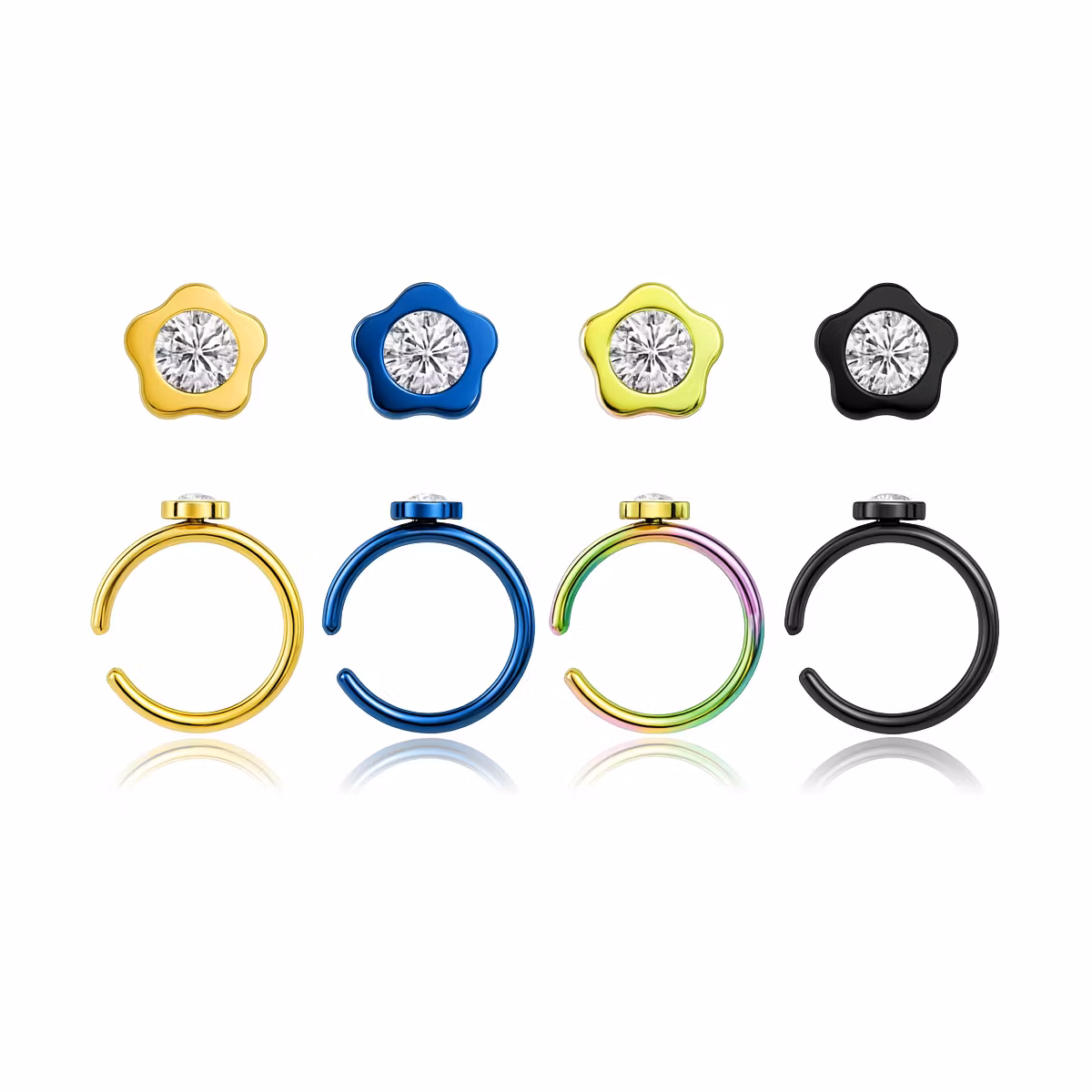 Näsring Nose hoop med blomma och klar crystal 8mm