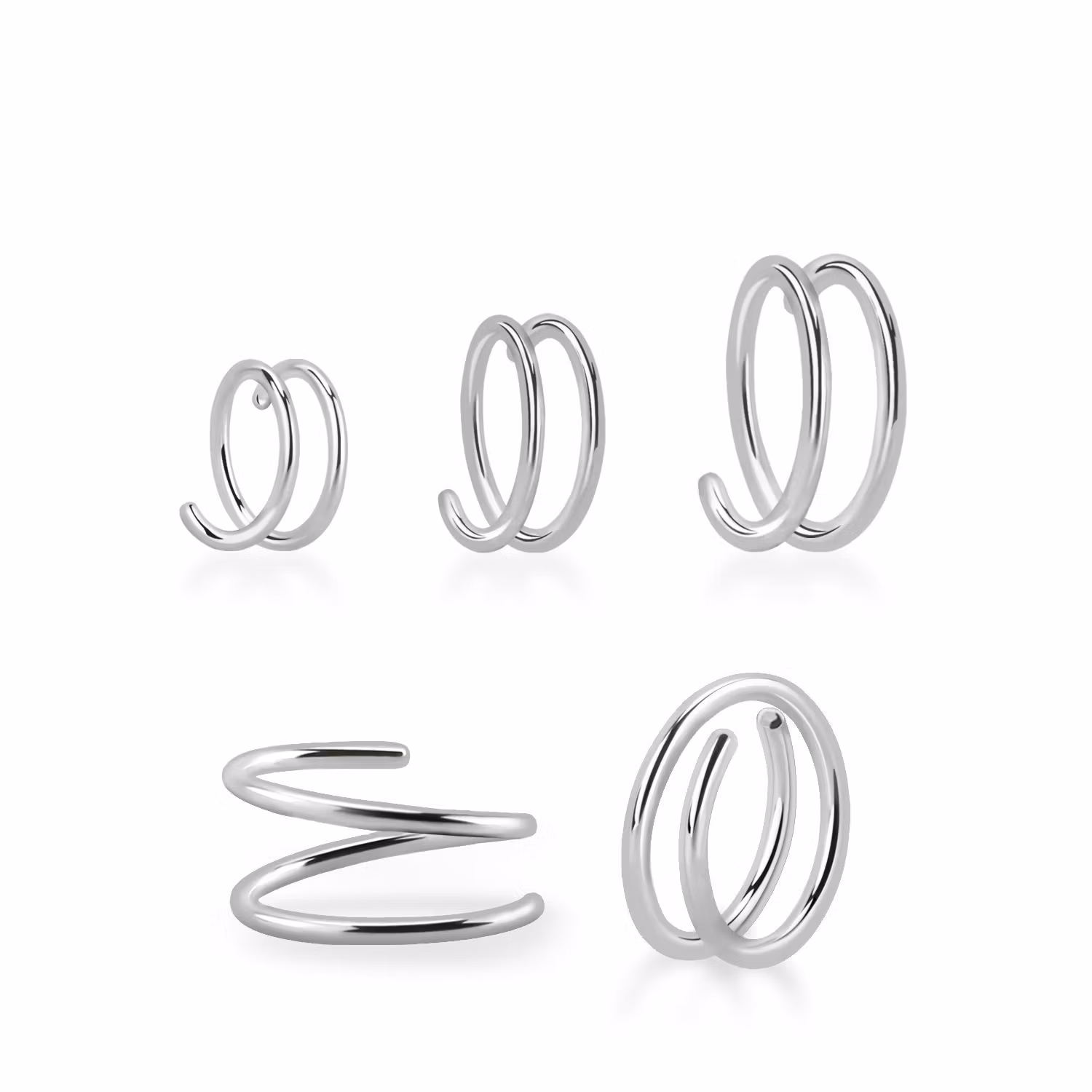 Spiral i 925-silver. 20gauge - 0.8mm tjock. Ytterdiameter. Passar bland annat piercing i näsan och örsnibb. Kan vara lite besvärlig att få in i näsan men väl på plats är den riktigt snygg. Den går att böja isär för önskad "bredd" där ringen går igenom piercingen och änden möter huden för att ge intryck av dubbla piercingar.