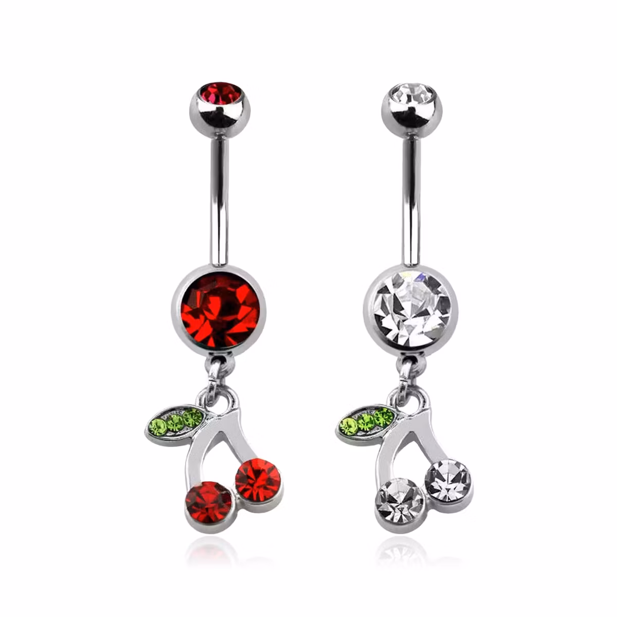 Navelsmycke / banan 1.6mm kirurgiskt stål med hänge - körsbär