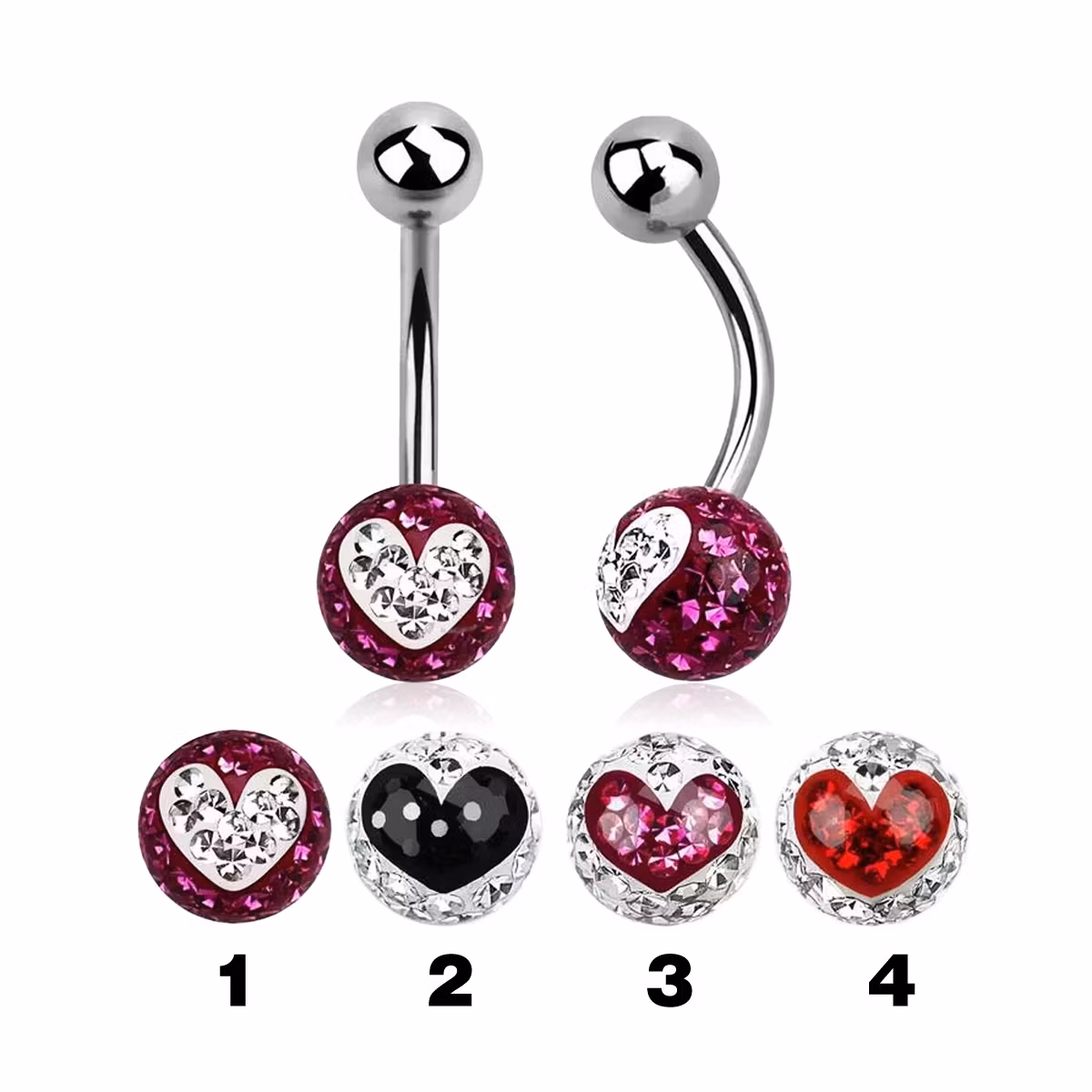 Banana / navelsmycke i kirurgiskt stål - 8mm feridoboll med hjärta
