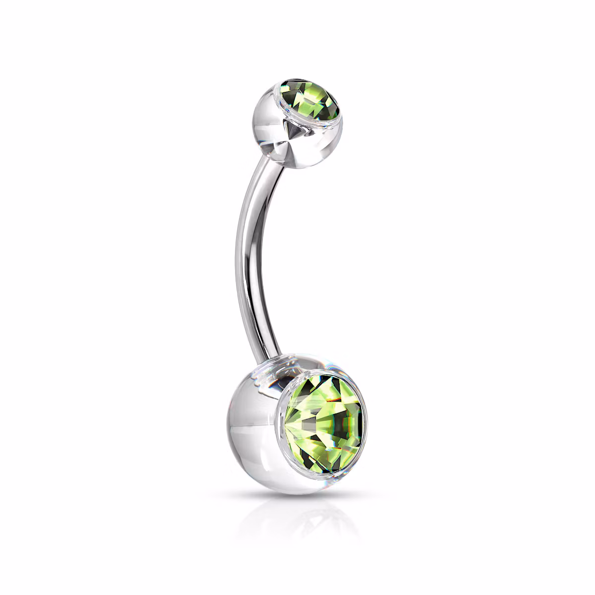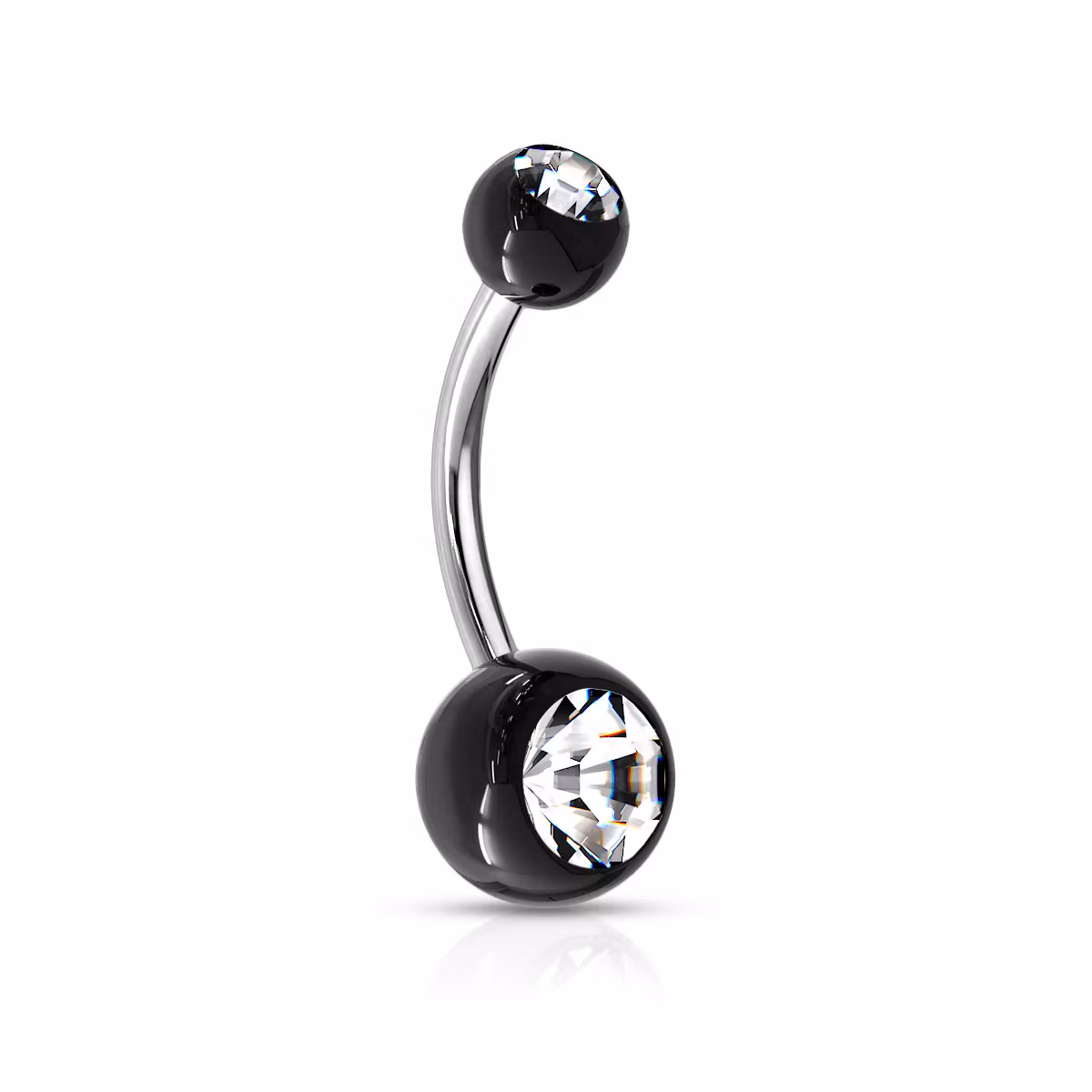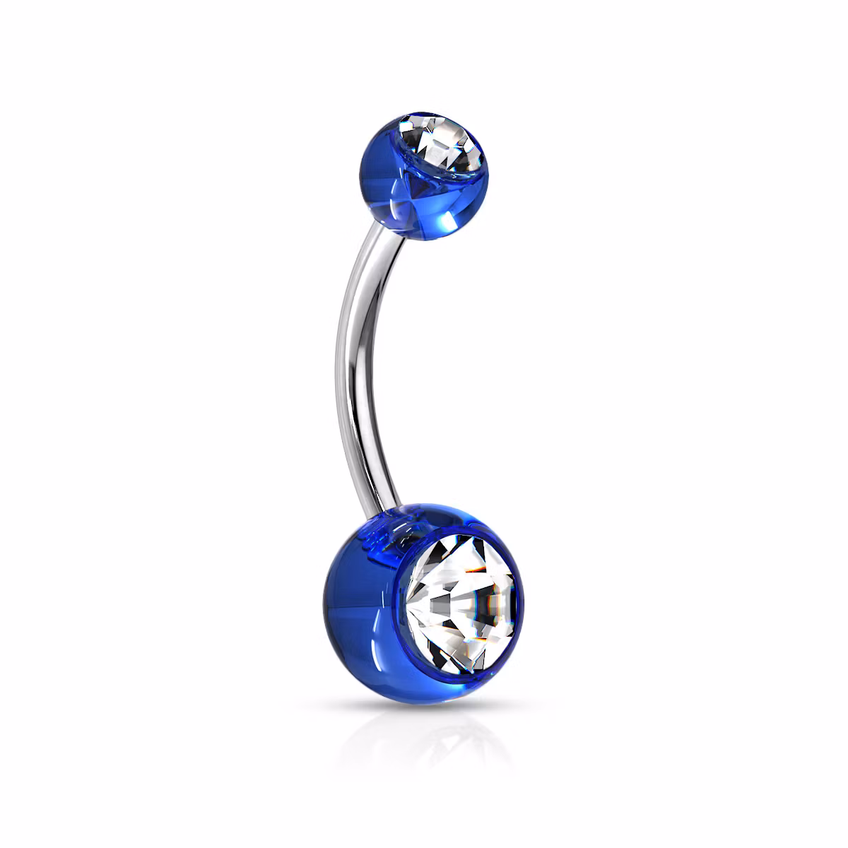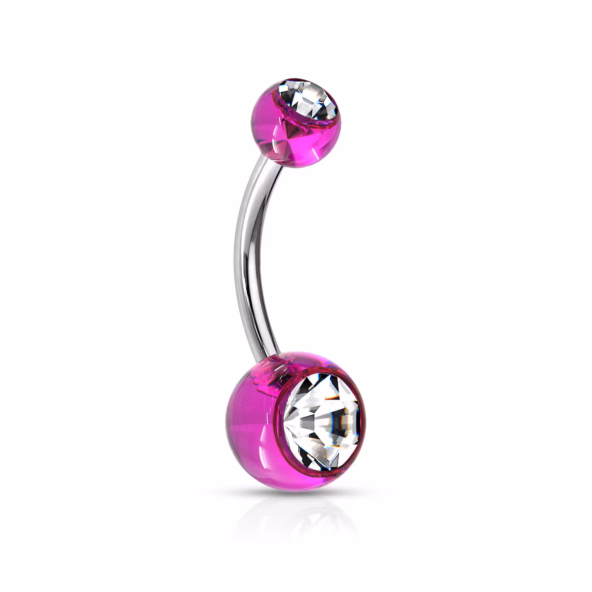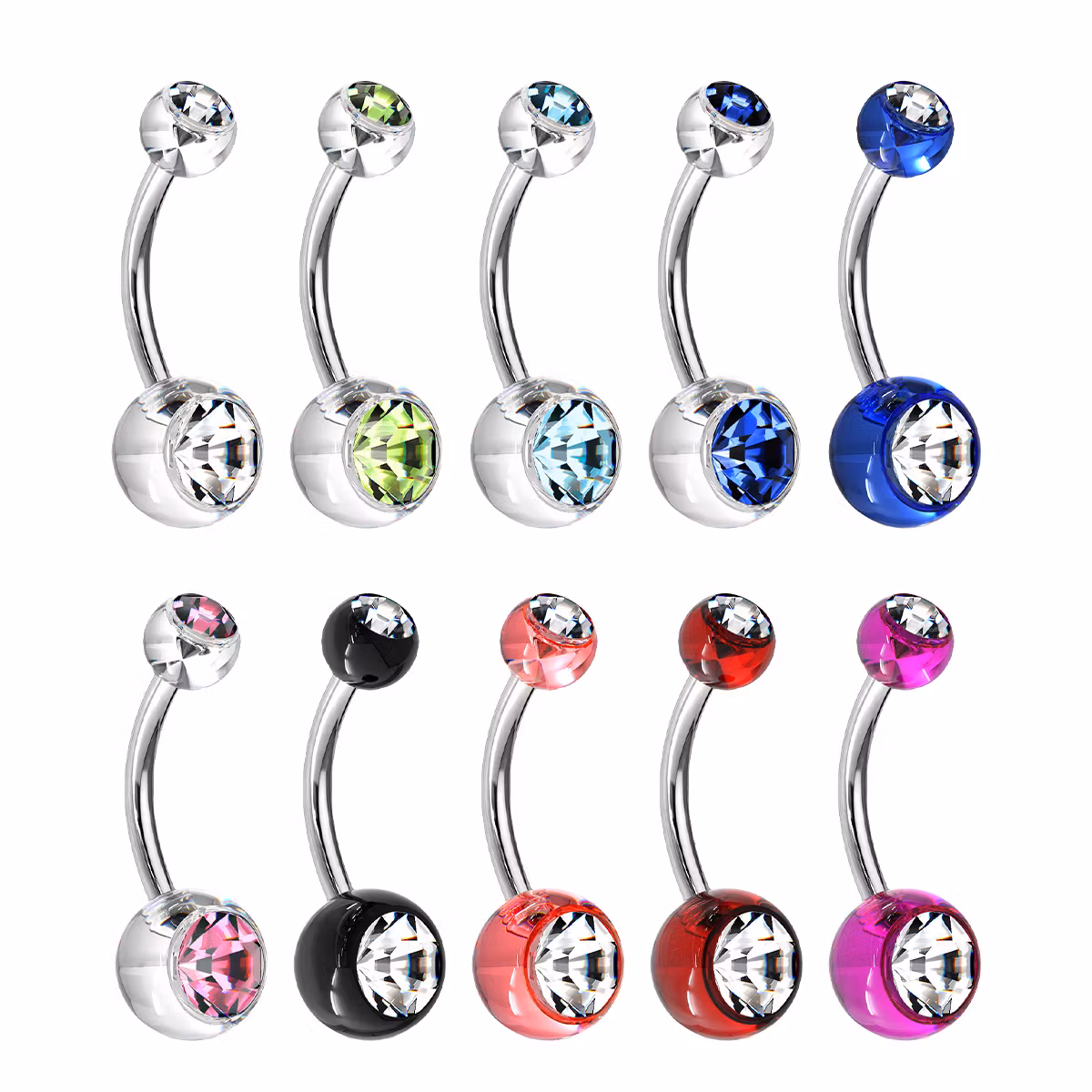 Banana / Navelsmycke kirurgiskt stål / akrylkulor med crystal