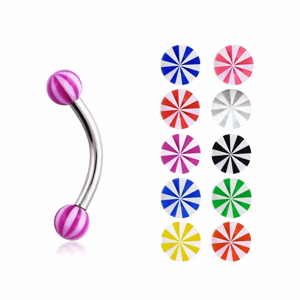 Banana 1.2mm i kirurgiskt stål med 3mm akrylkulor (beachball)