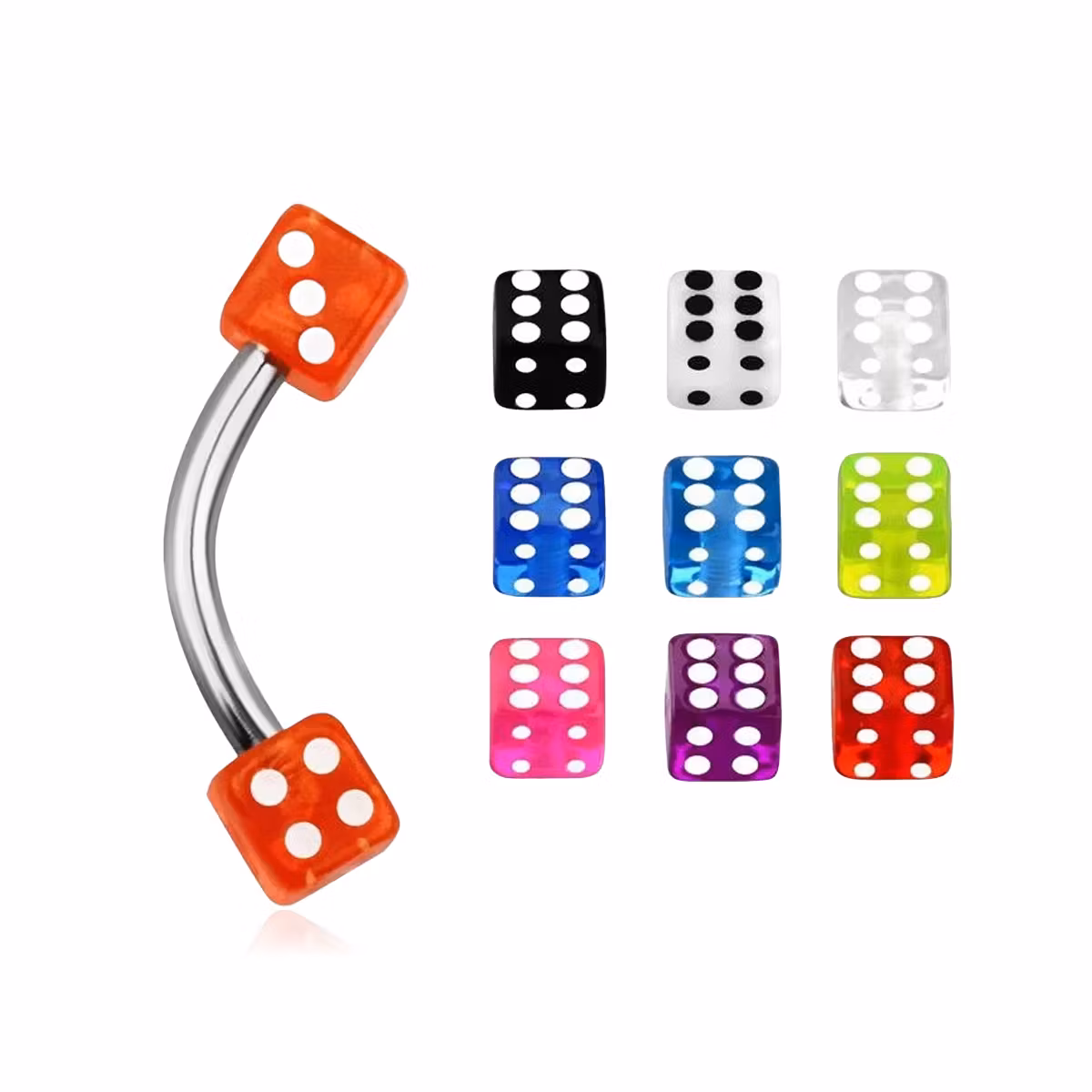 Banana 1.2mm i kirurgiskt stål (8mm) med 3mm akryltärningar