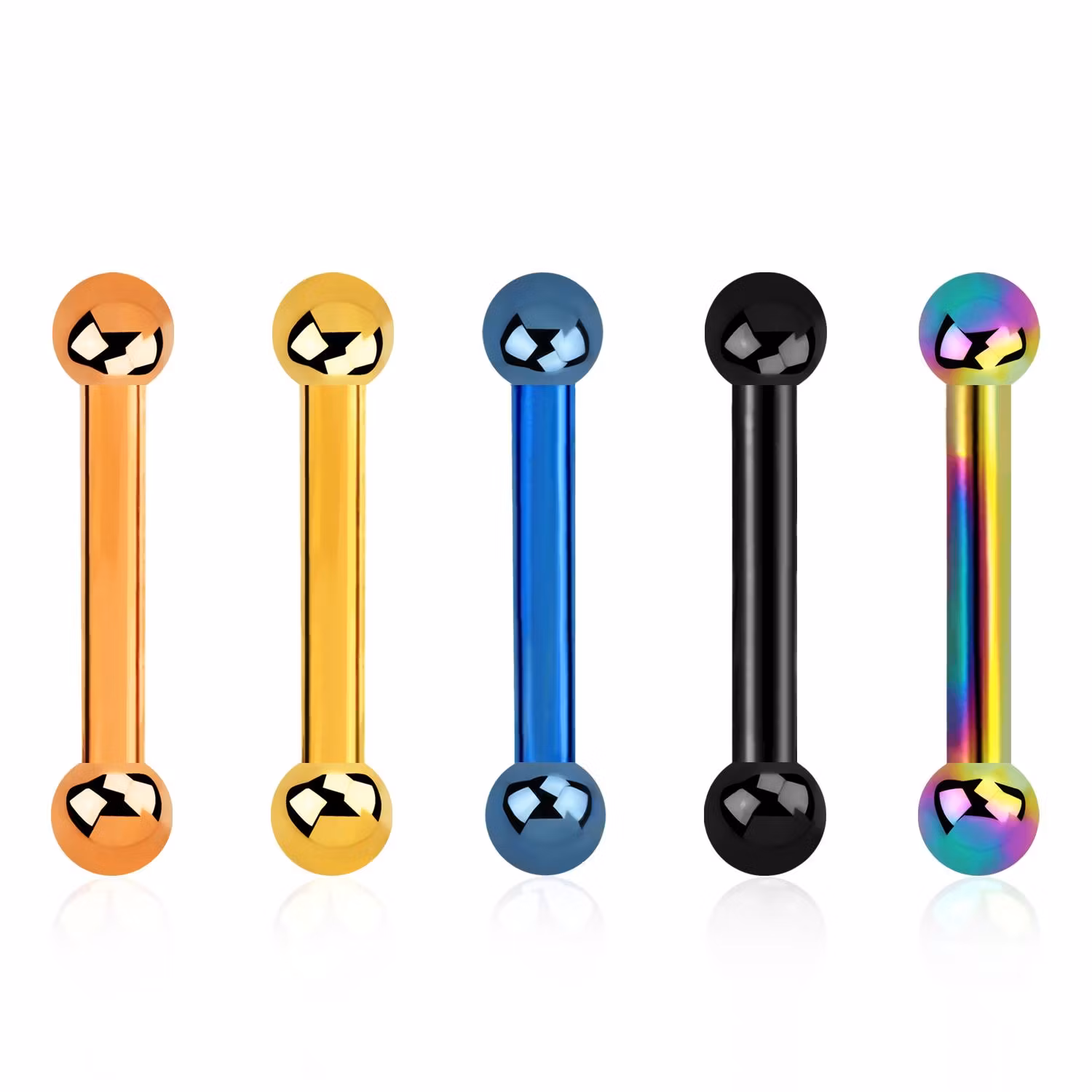 Barbell och kulor i PVD-pläterad 316L kirurgiskt stål.