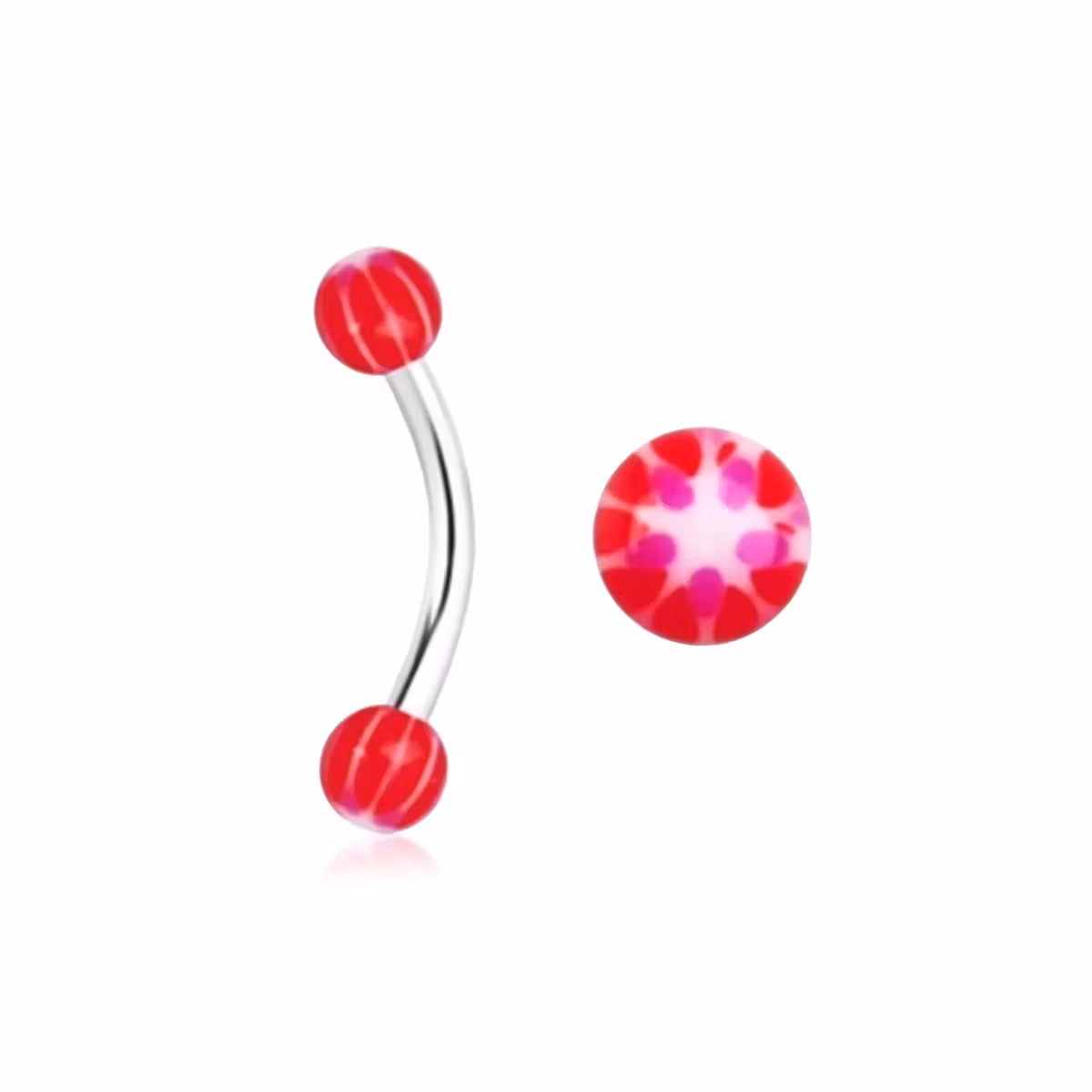 Banana ögonbryn 1.2mm med röd/vit stjärnmönstrad kula