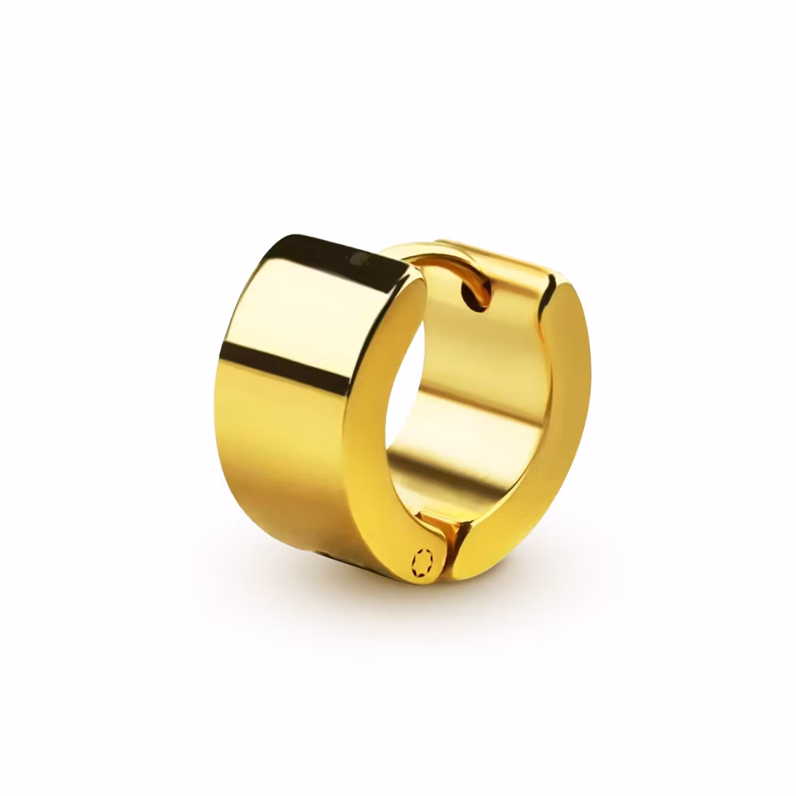 Högglanspolerad guldpläterad 316L kirurgiskt stål. Bred modell. Passar vanligt öronhål.