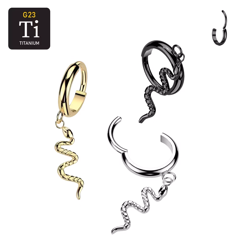 Titanium ring med gångjärn - Slingrande orm i hänge