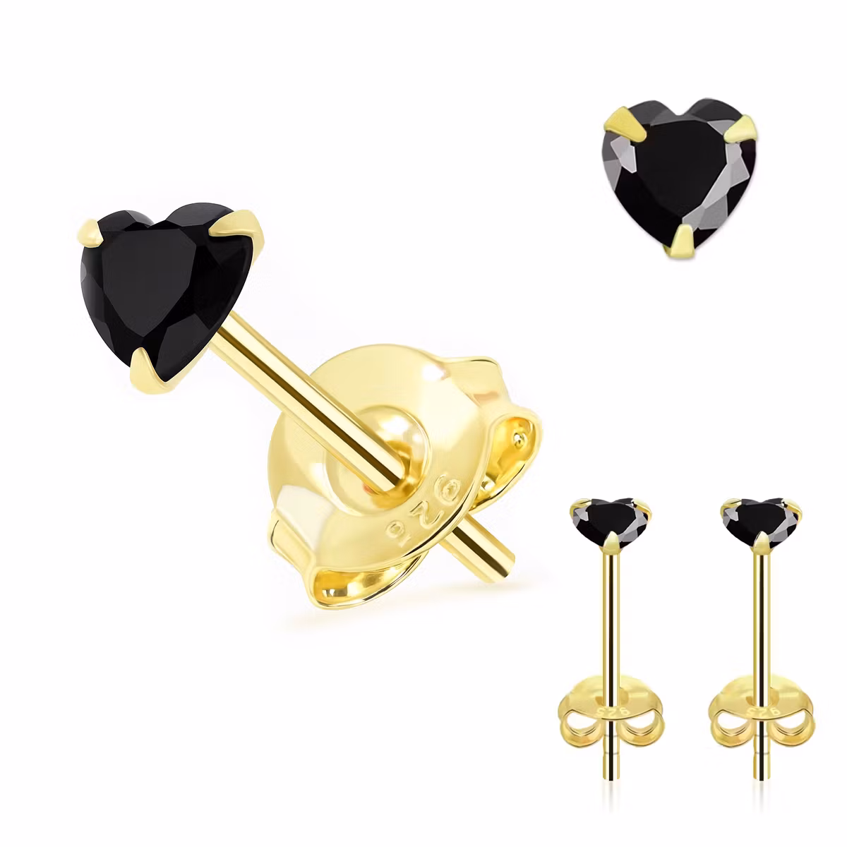 Örhänge i guldpläterad 925-silver med 3mm hjärtformad CZ (par)