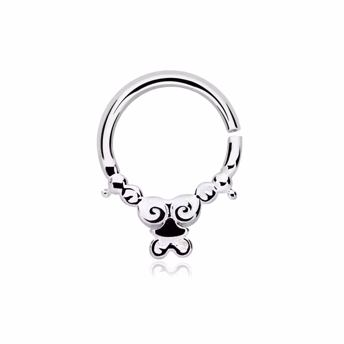 Öppnas och stängs genom att försiktigt vridas, då mekanisk utmattning sker är livslängden på smycket begränsad.