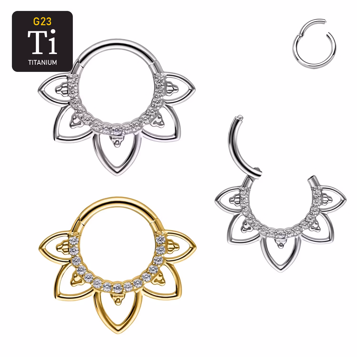 Titanium ring med gångjärn - Filigran clicker med CZ